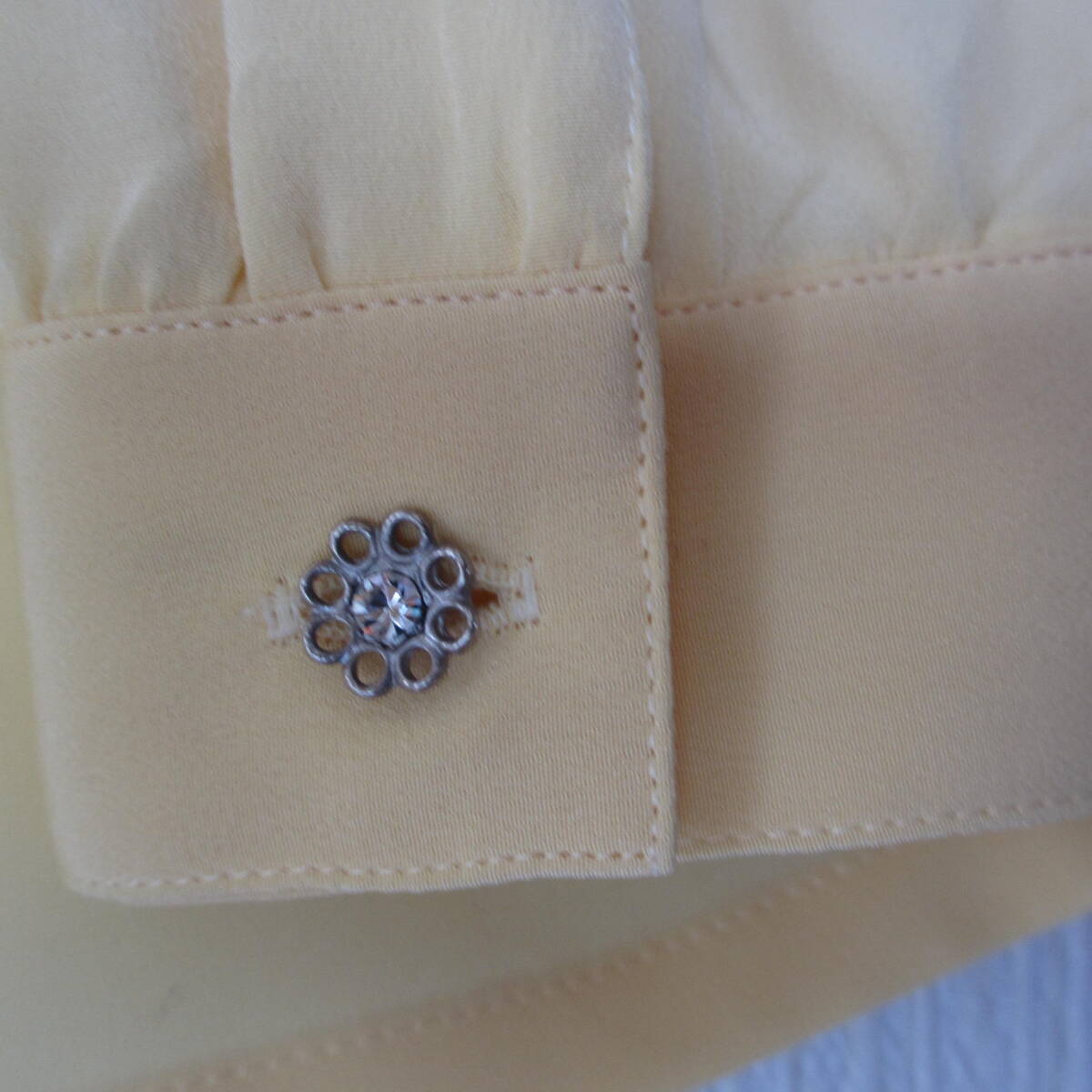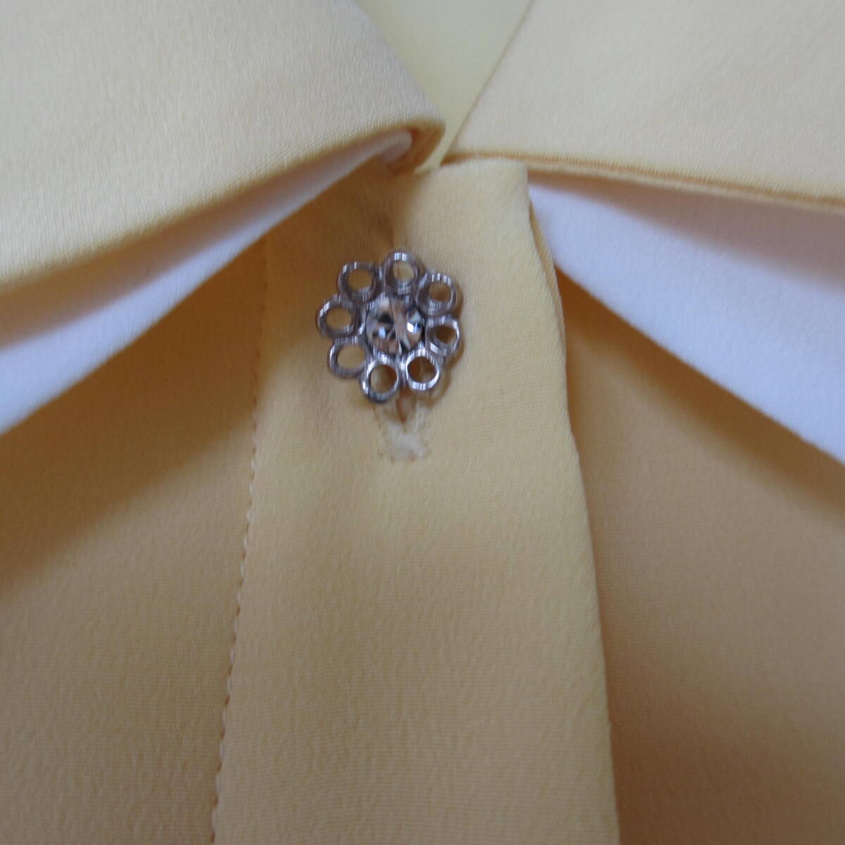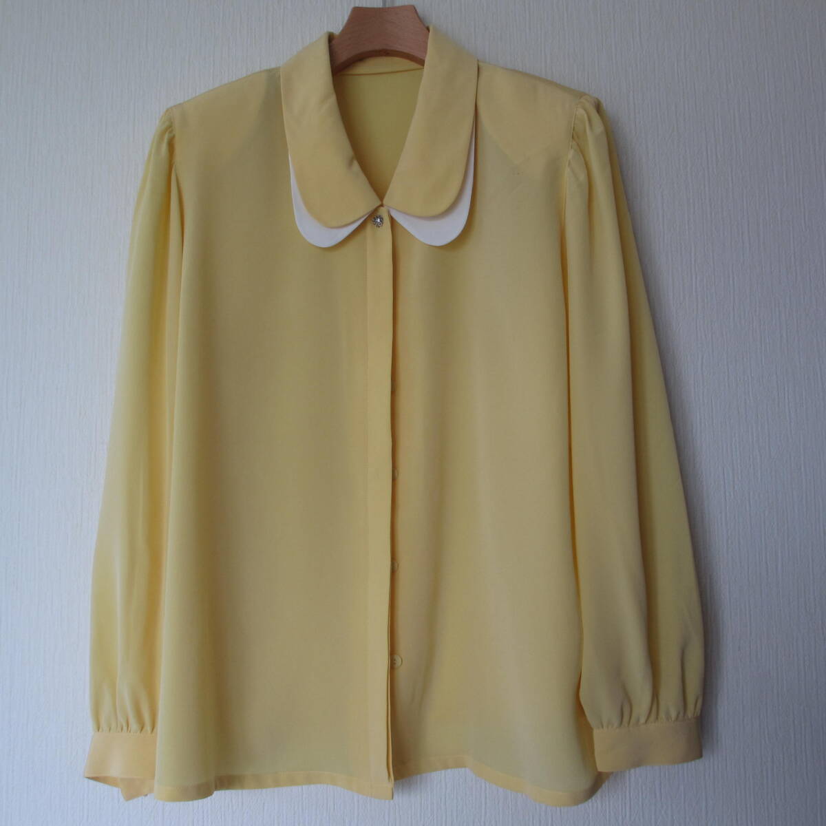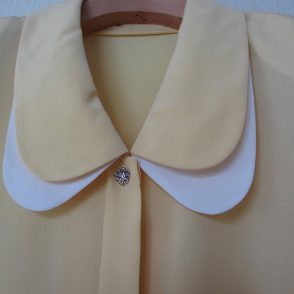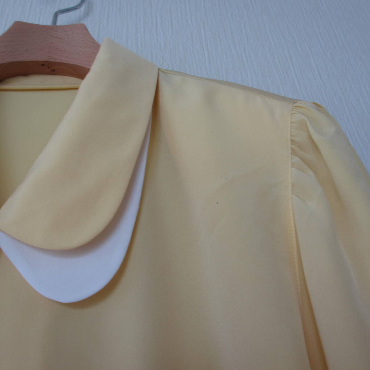 鮮やかな黄色地で襟が黄色地と白地と二重のデザインがとてもお洒落で、