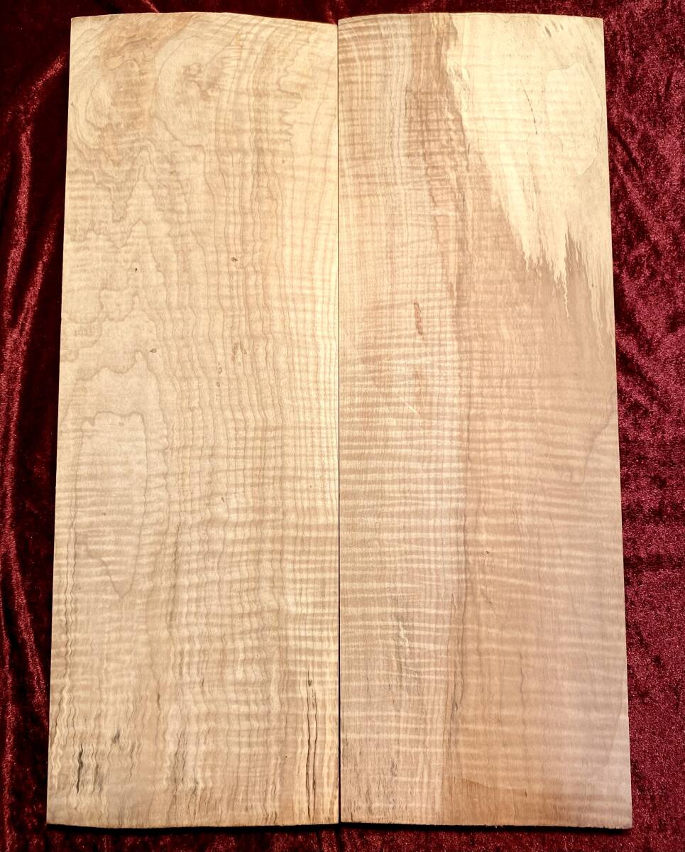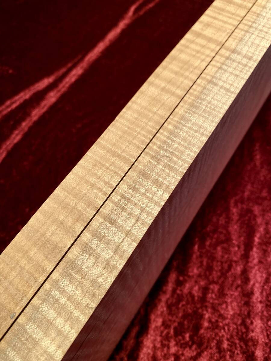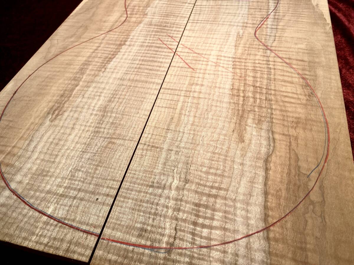 大切にストックしていたアーチトップ用のハードメイプル 柾目ブックマッチ(ボディトップ材)になります。