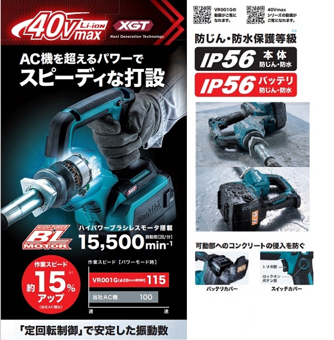マキタ製の40Vmax充電式コンクリートバイブレータの