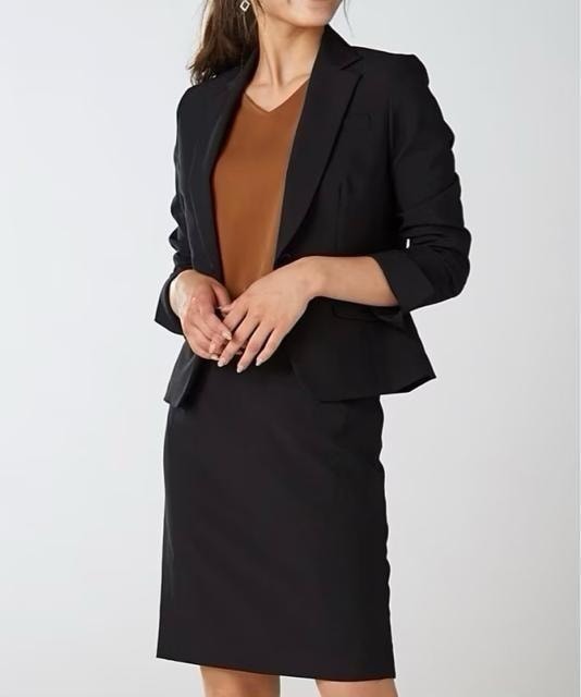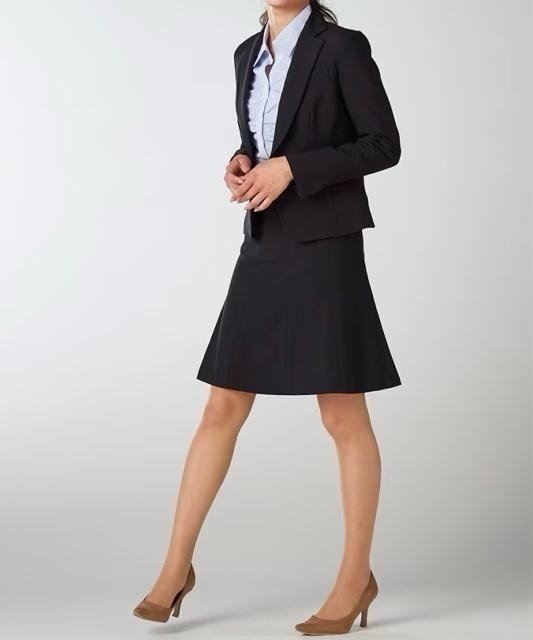 新品☆13号L黒系無地♪フレア&タイトスカートスーツ♪お仕事☆a229