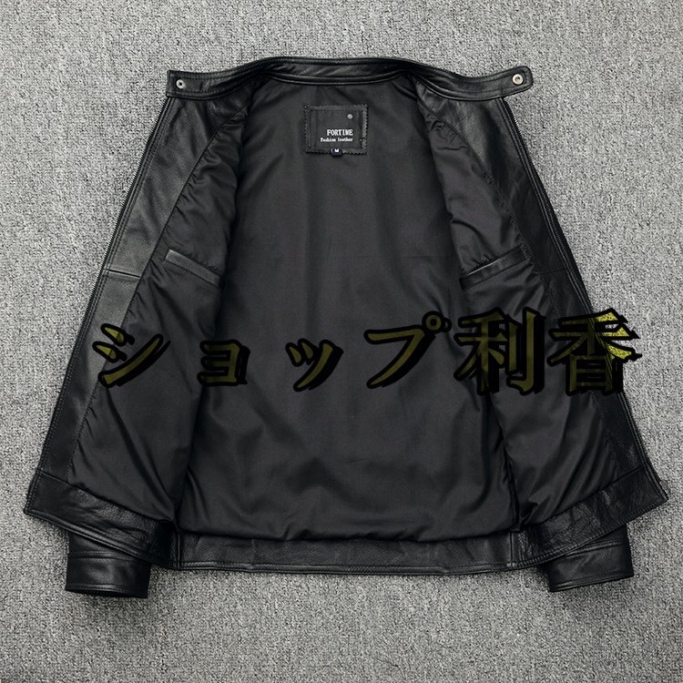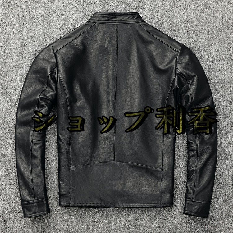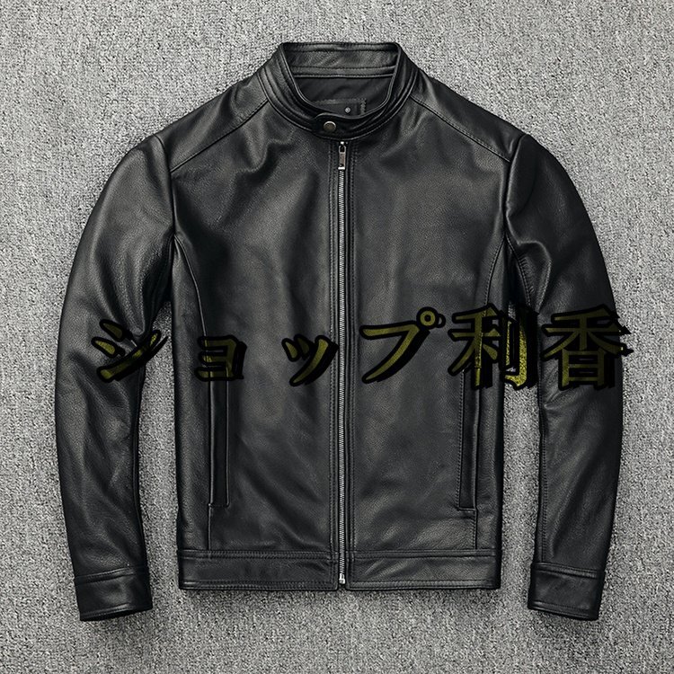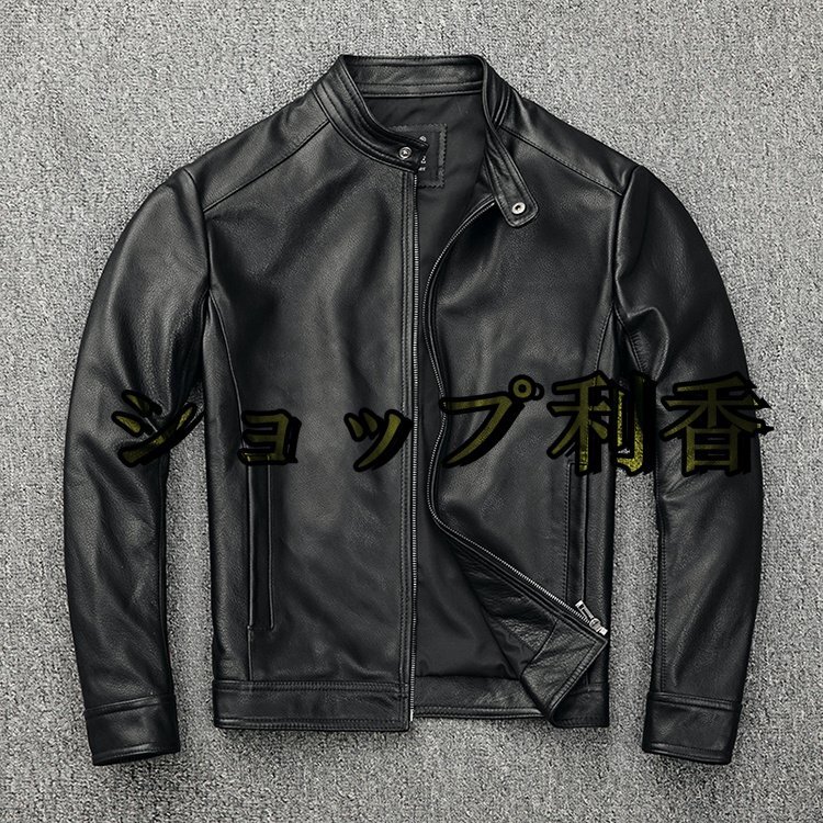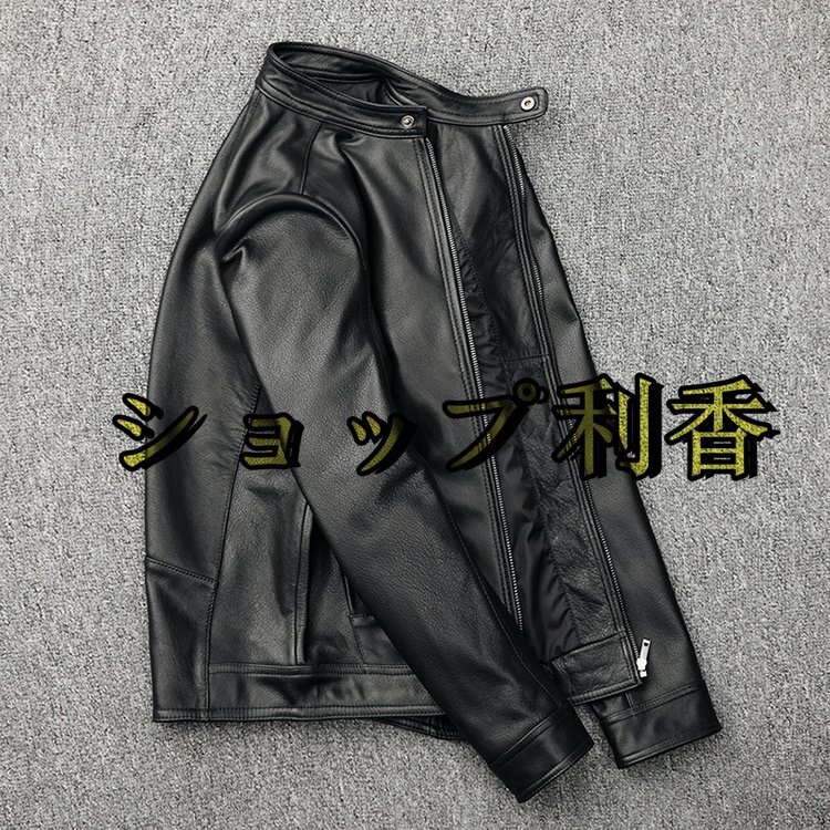 メンズジャケット レザー タイト 牛革 本革ジャケット ブルゾン 立ち襟 オイルレザー 黒S~4XL
