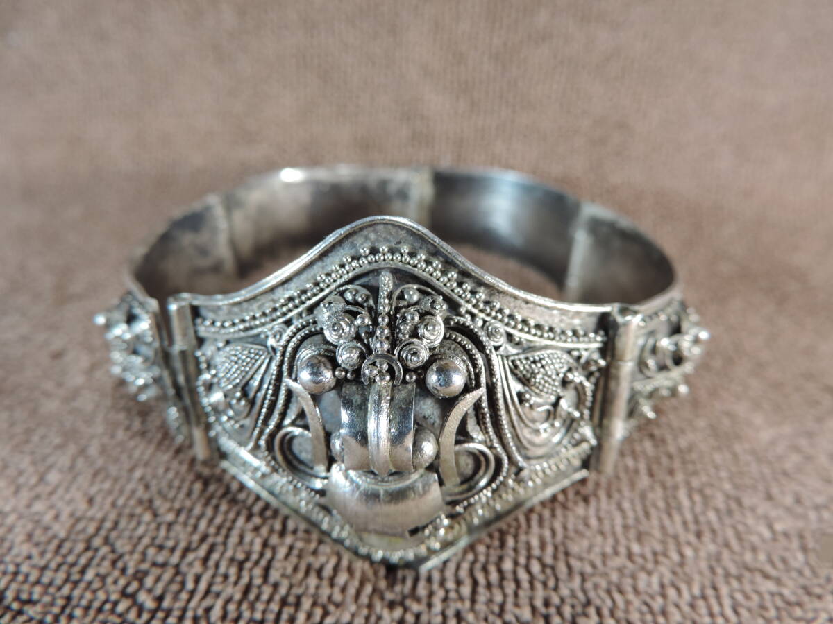 ヴィンテージ 中古・シルバーSURA 90%刻印有り・レディースバングル・ブレスレット18cm・約22.60g・修理必要!
