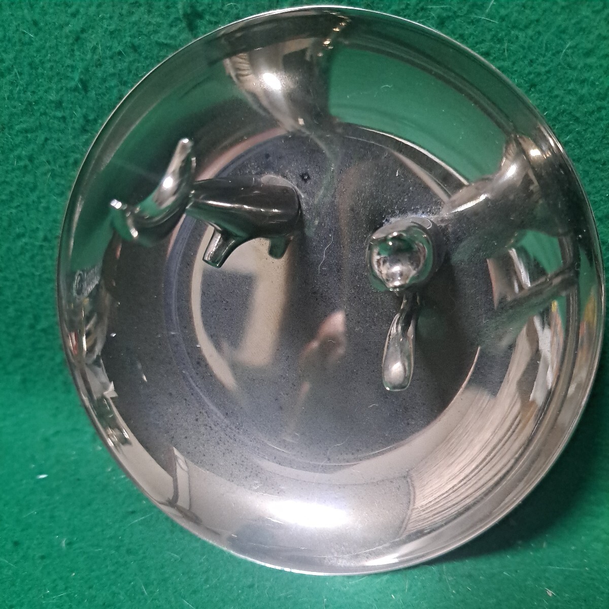 金属製でサイズは直径12cm、高さ6.5cmぐらいです。