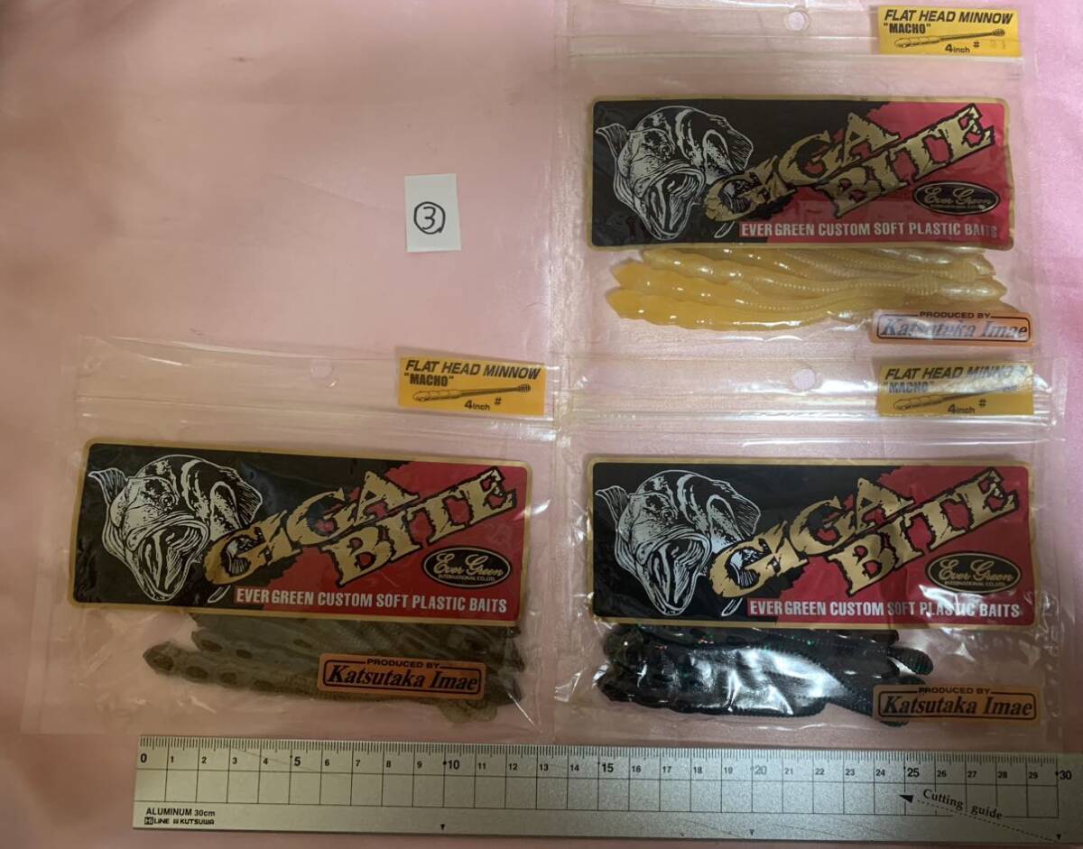 EVER GREEN エバーグリーン GIGA BITE ギガバイト FLAT HEAD MINNOW 4inch ③ワーム 3個セット 新品です。
