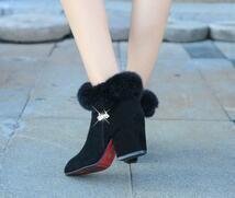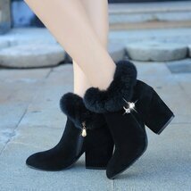 レディース 太ヒール レザー ショートブーツ ブーティ ヒールブーツ ミドルブーツ ハイヒール 秋冬 高ヒール グレー 23cm