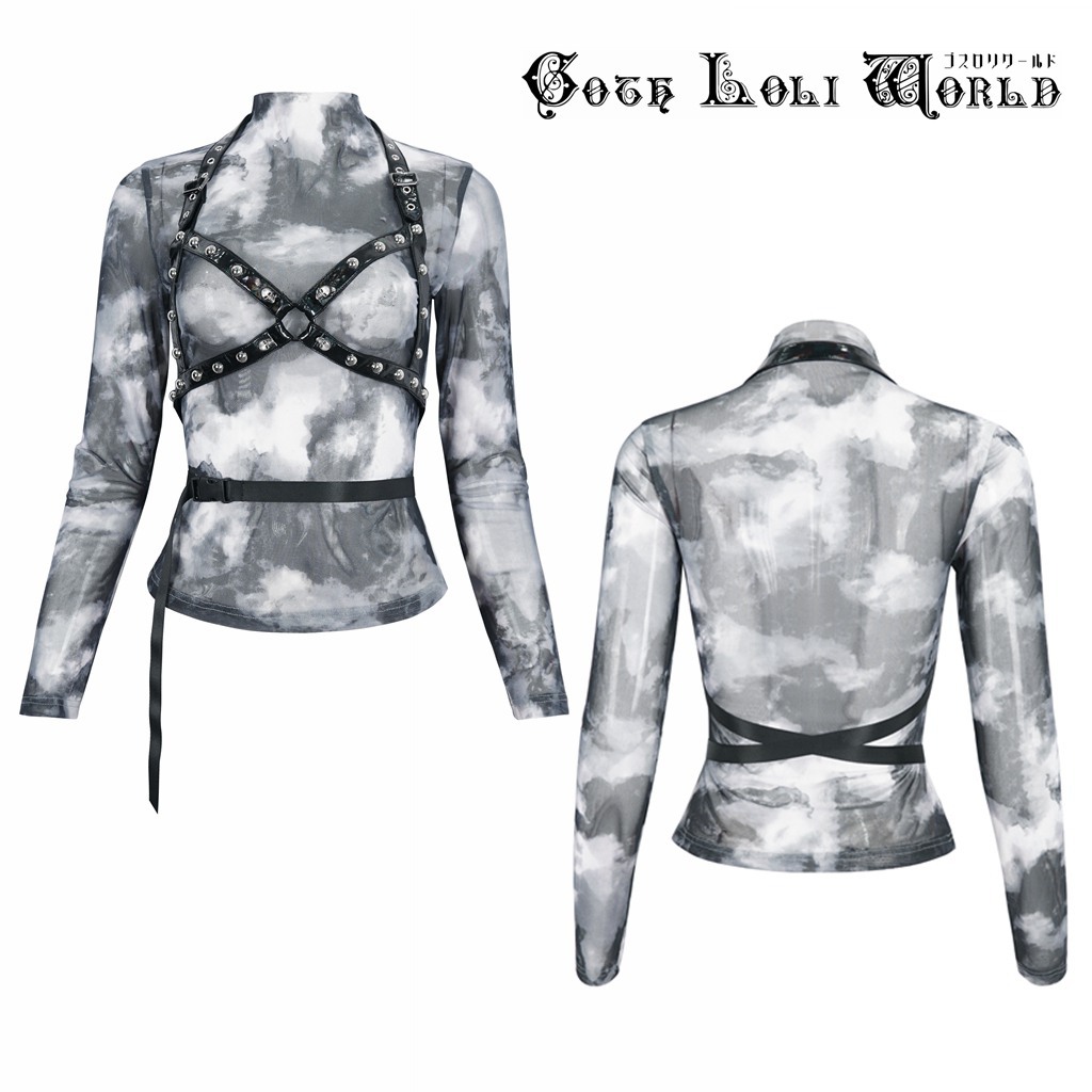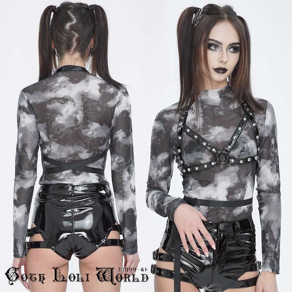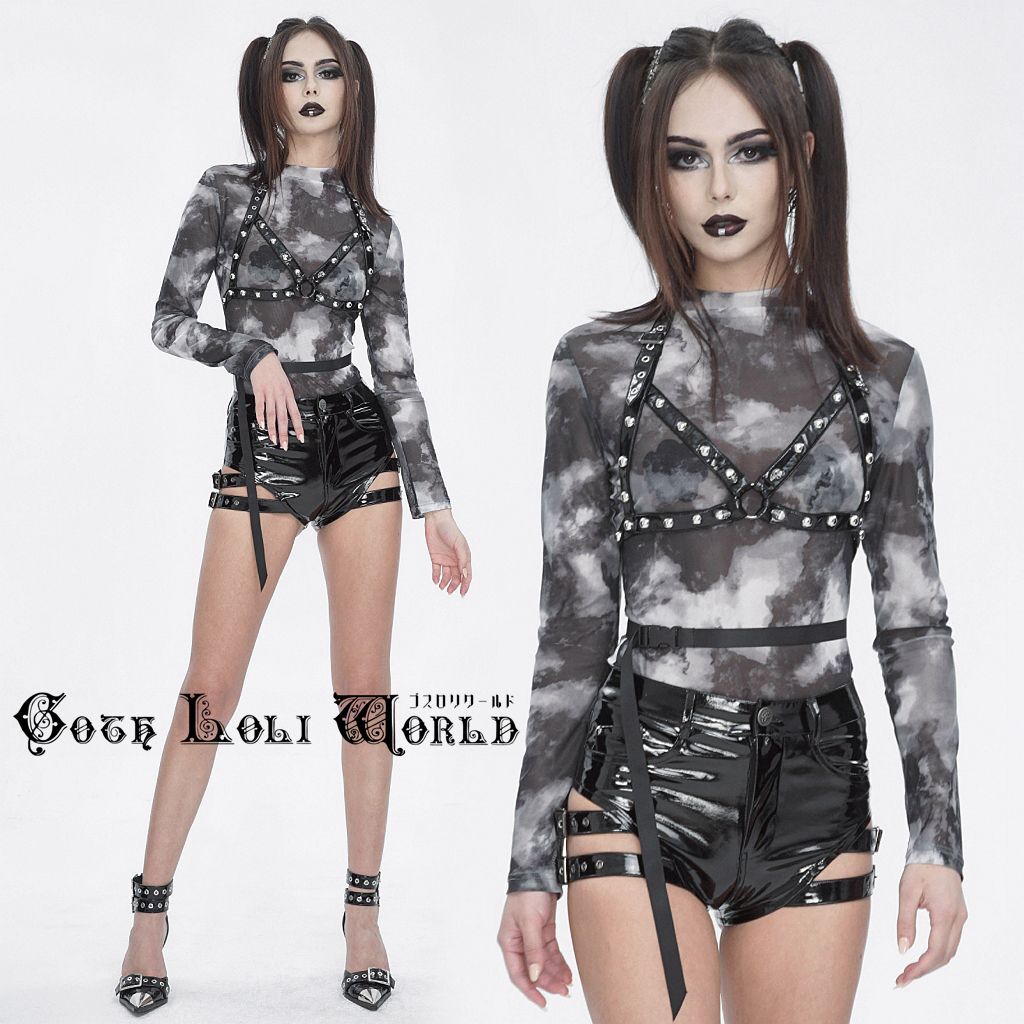 TT266-XS モノクロマーブルシースルーシアー ハーネス付き カットソー ゴスロリワールド ゴシック パンク ロック ビジュアル系 V系