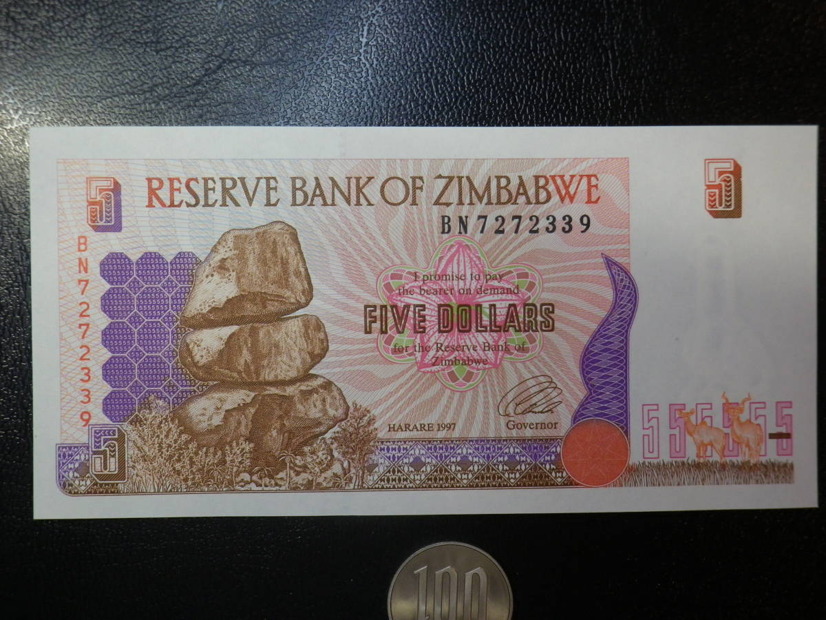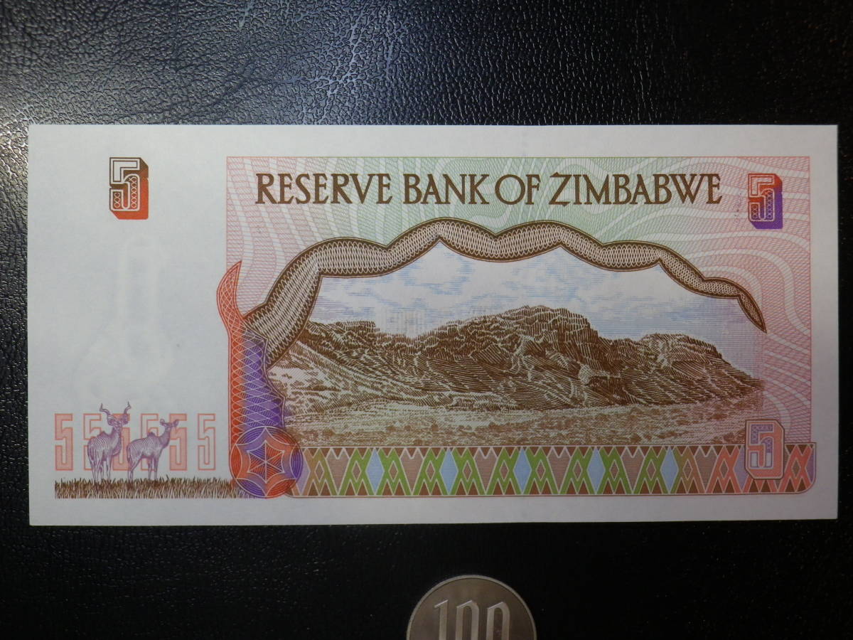 ジンバブエ 1997年 5Dollars 未使用 p-5b