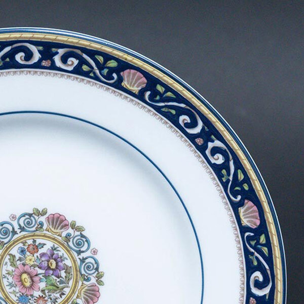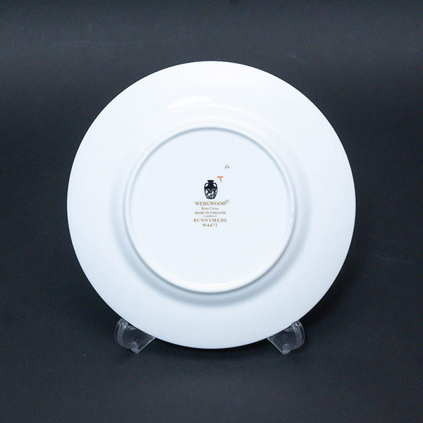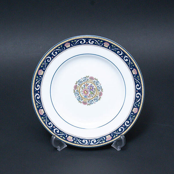 イギリスの名窯、ウェッジウッドのラニーミードの15cmプレート(パンプレート)。 1215年にマグナカルタ(大憲章)が調印されたことで有名なイングランド南東部の街の名前が付けられたシリーズ。コバルトのエナメル部分には貝殻が、同部分には草花が描かれてたクラシカルなシリーズです。16cmプレートは、パンやケーキ用、取り分け皿としてお使いいただける便利なサイズです。 ■サイズ 直径155mm ■付属品 なし ■状態 B(良品):微細なカトラリーキズがあります。 |