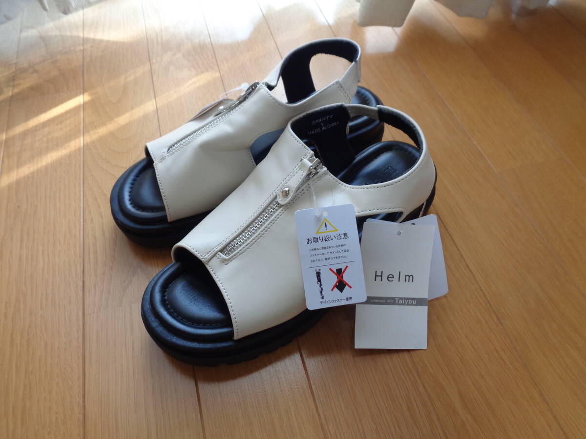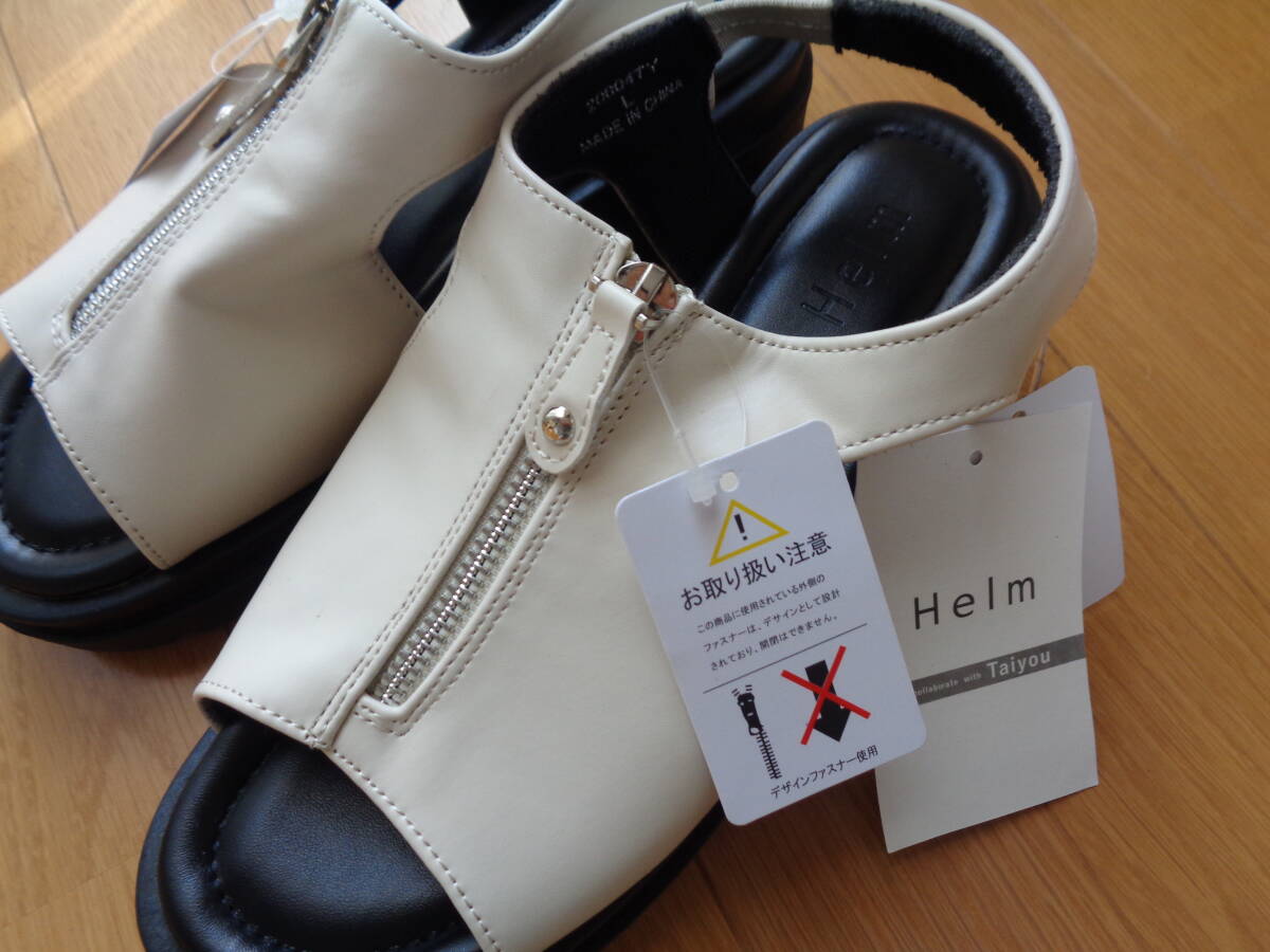 しまむら☆インフルエンサーコラボ☆たいよう☆taiyou☆ヘルム☆helm☆ジップサンダル☆サンダル☆白☆L☆新品☆ふかふか歩きやすい