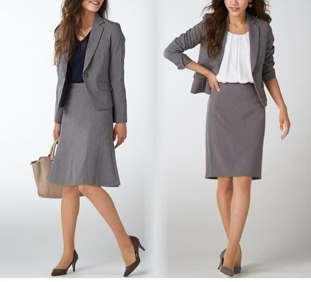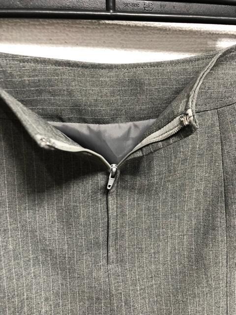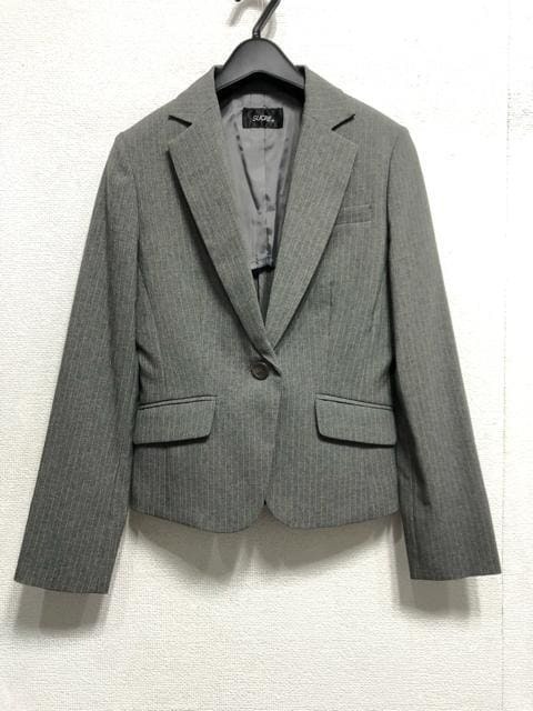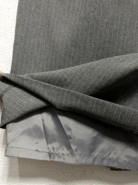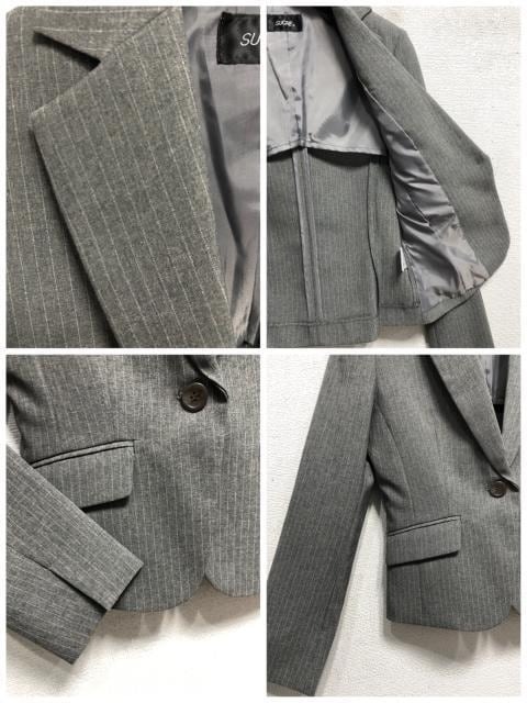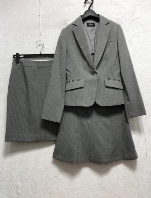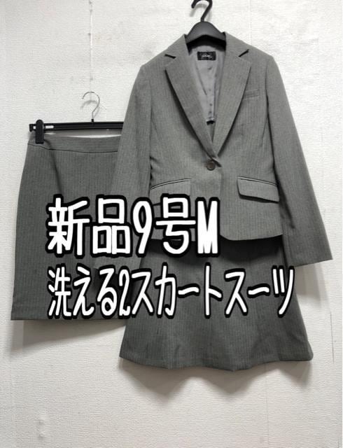 新品☆9号M♪グレー系ストライプ♪スカートスーツ3点セット洗える☆a253
