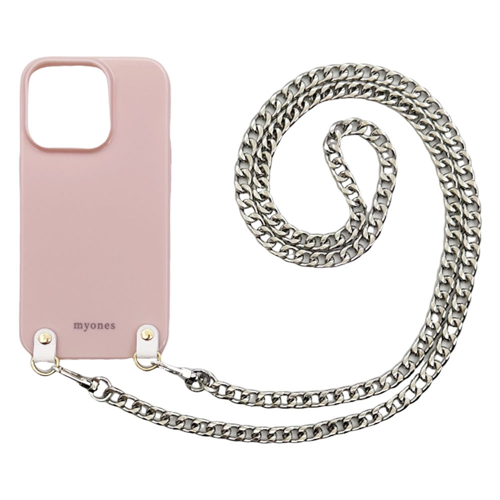 Galaxy A52 5G SC-53B(くすみピンク/シルバーA)チェーン ソフトケース スマホショルダー 肩掛け 首かけ 斜めがけ かわいい 韓国