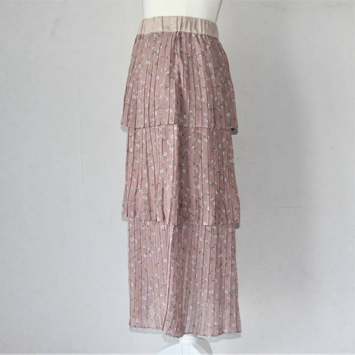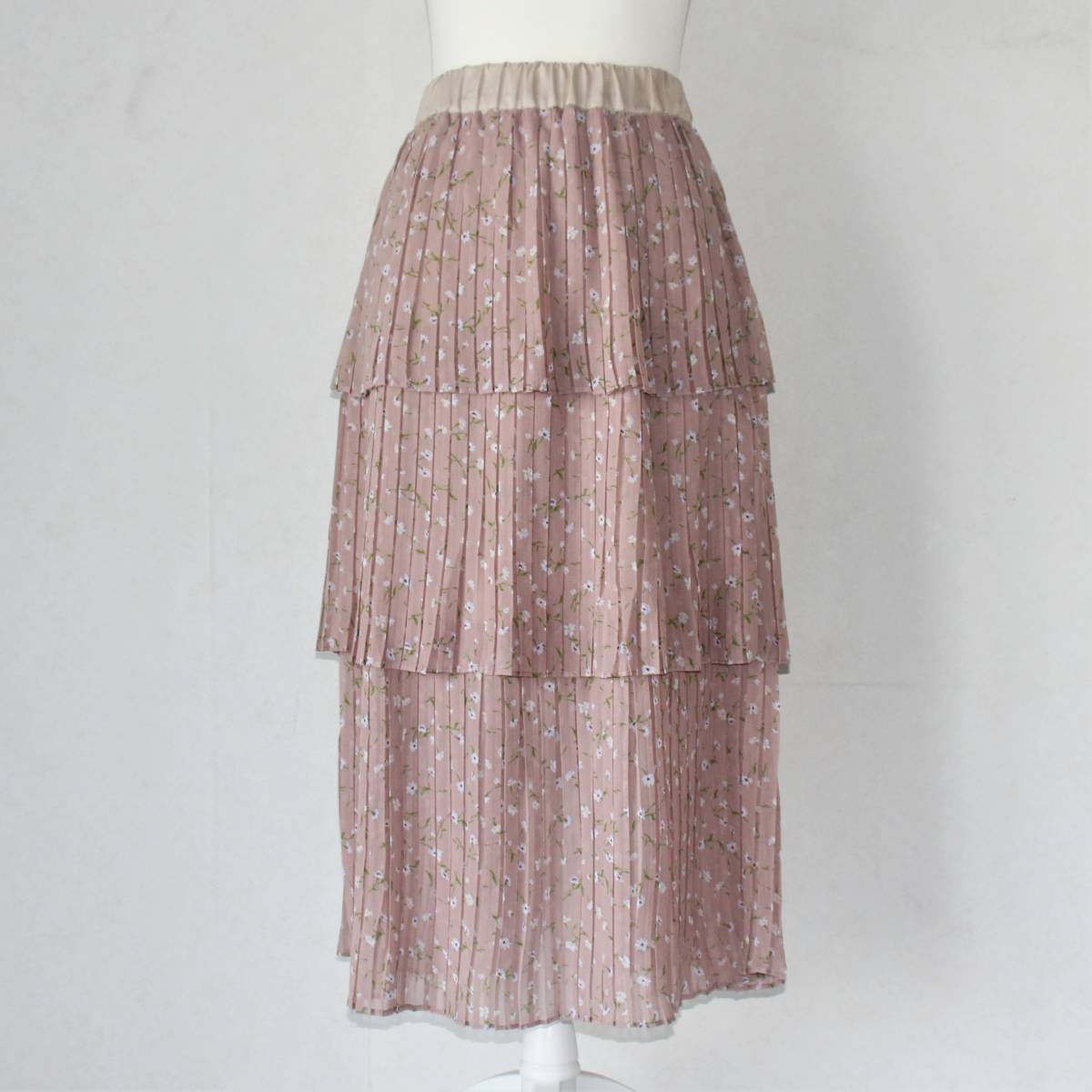 ☆新品☆価格5000円+税☆マジェスティックレゴン☆フラワー3段 プリーツ スカート size M【圧縮発送】くすんだピンク