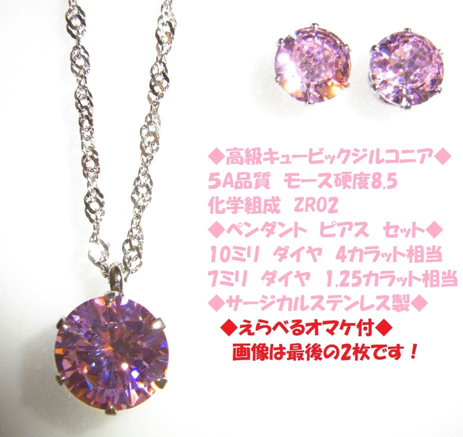 ◆9ct ピンク ジルコニア ペンダント ネックレス ピアス ステンレス製◆ | |||