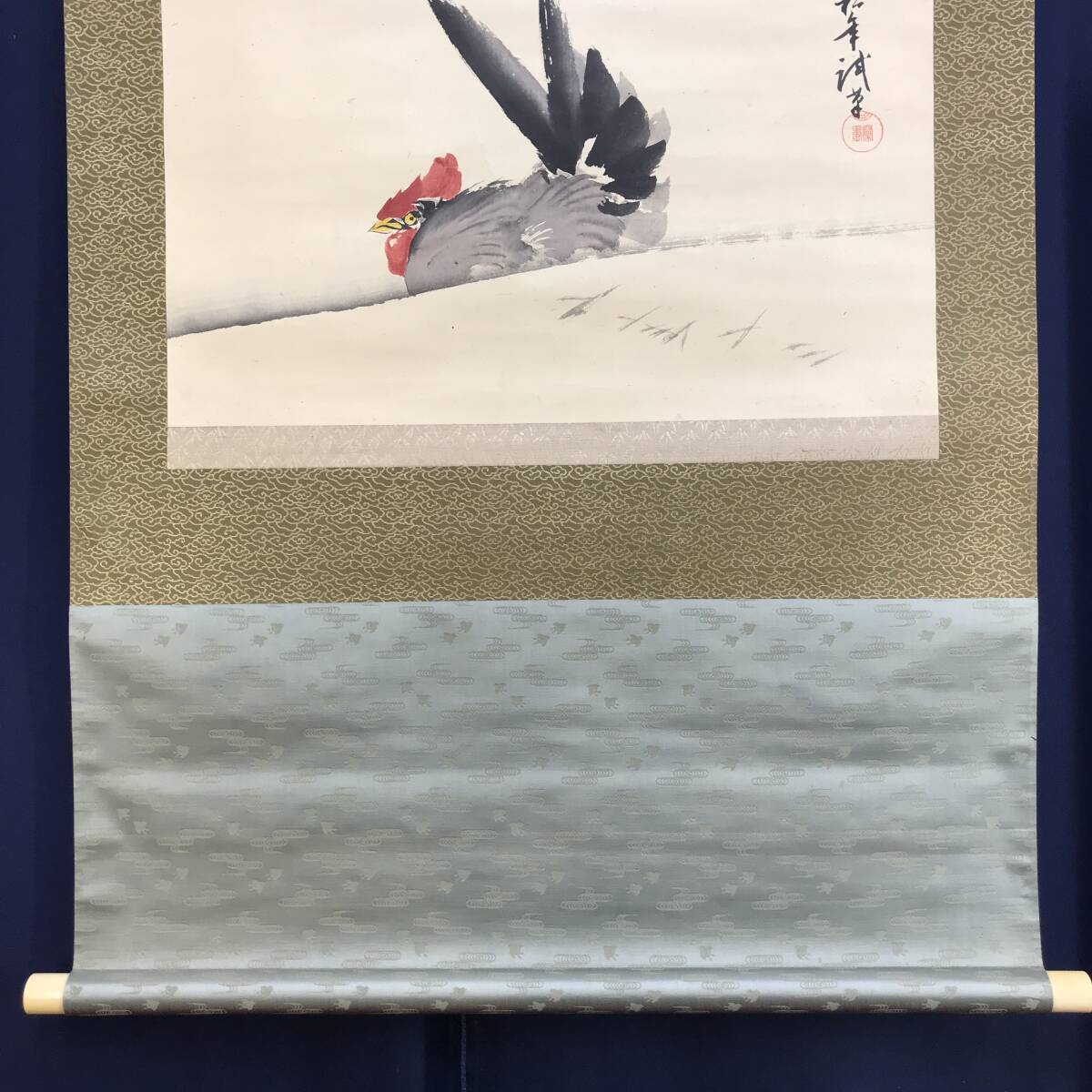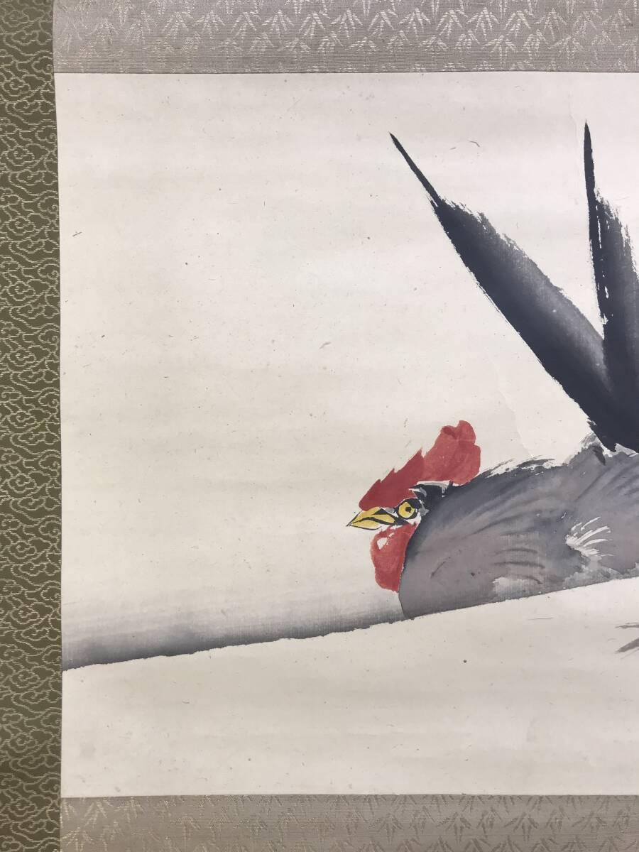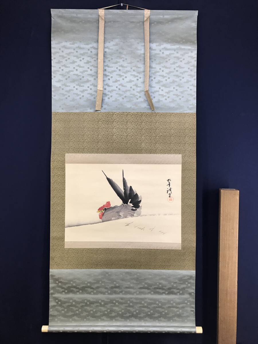 真作/鈴木松年/雪中鶏図/鶏図/花鳥図/横物/掛軸☆宝船☆AF-315
