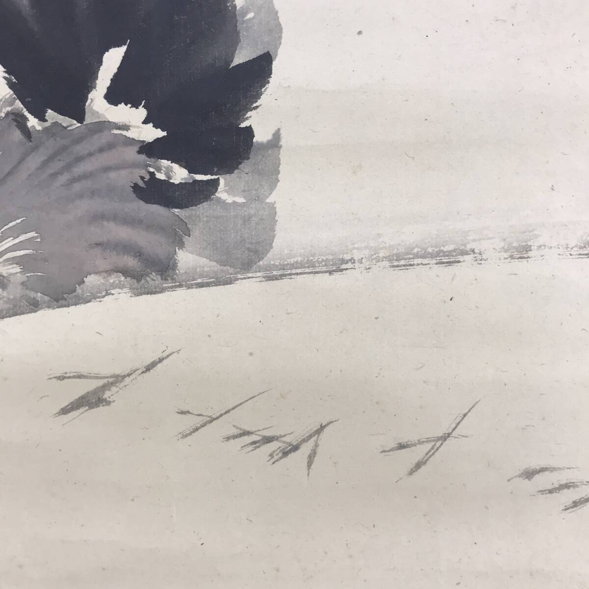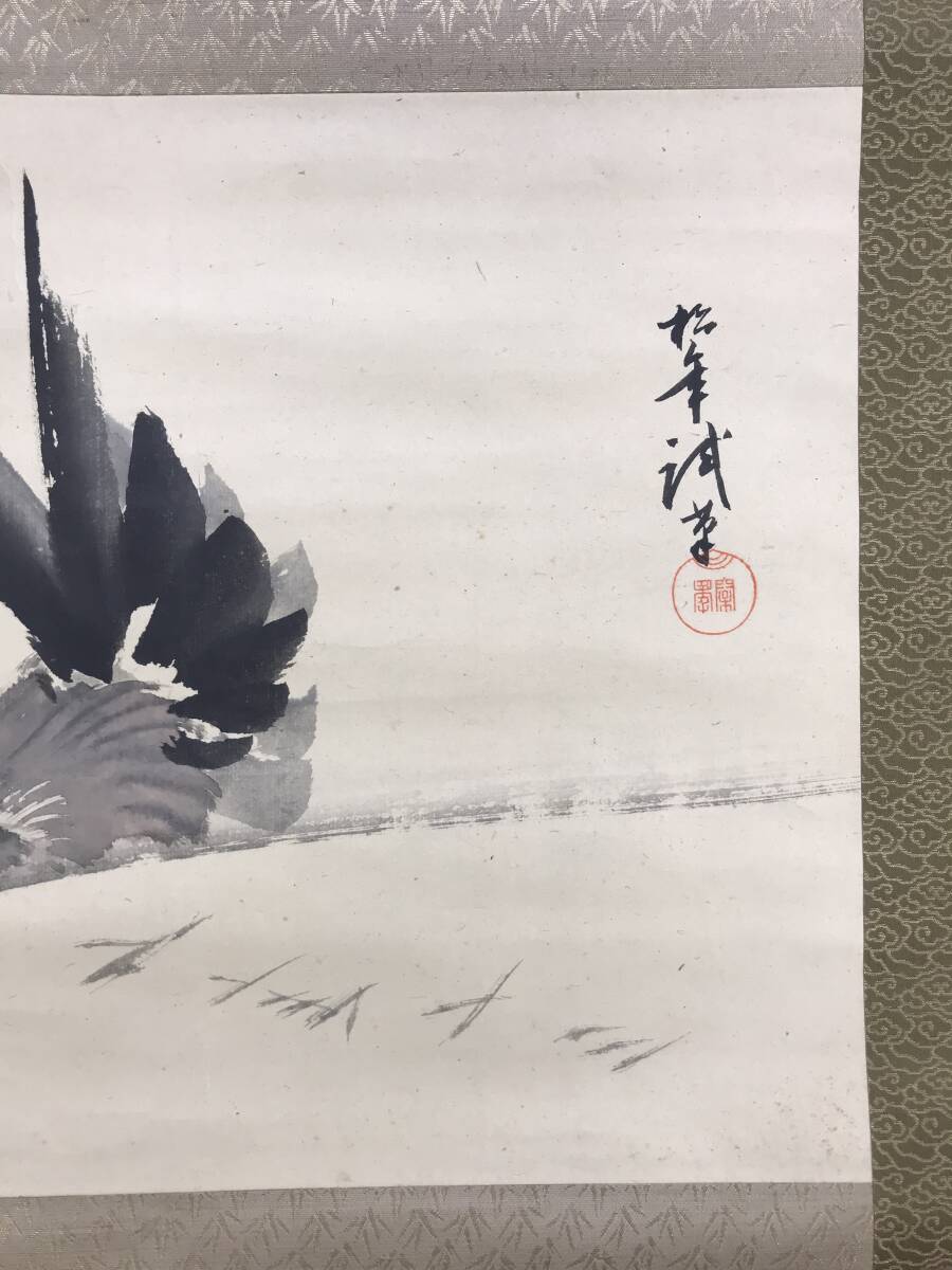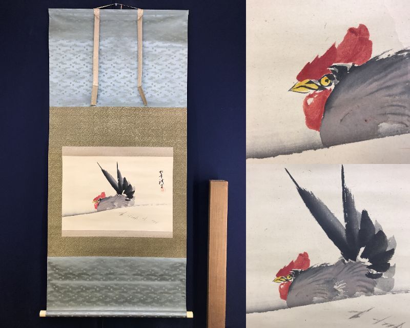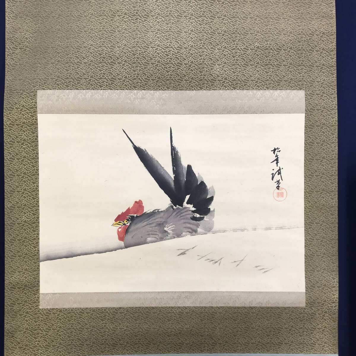 真作/鈴木松年/雪中鶏図/鶏図/花鳥図/横物/掛軸☆宝船☆AF-315