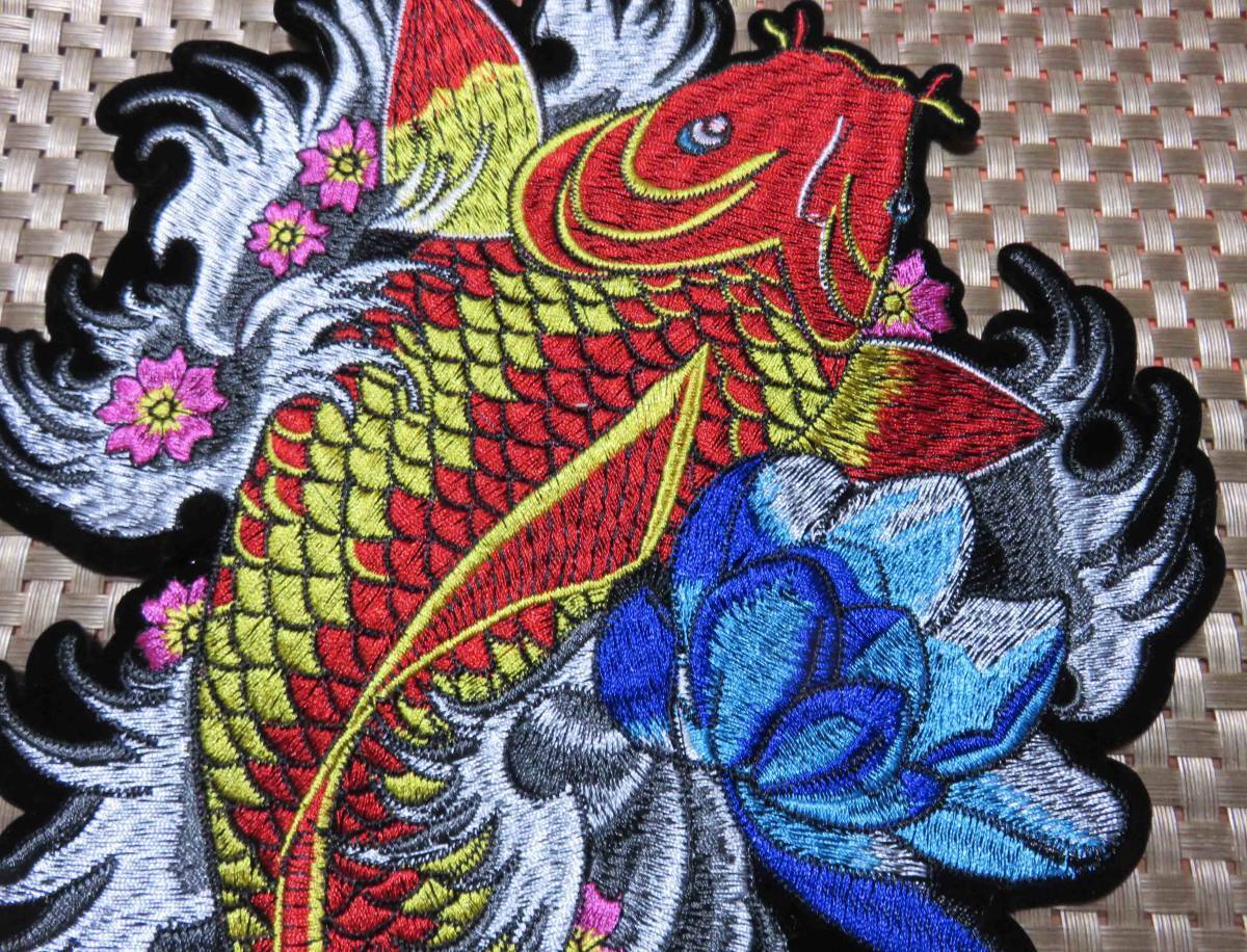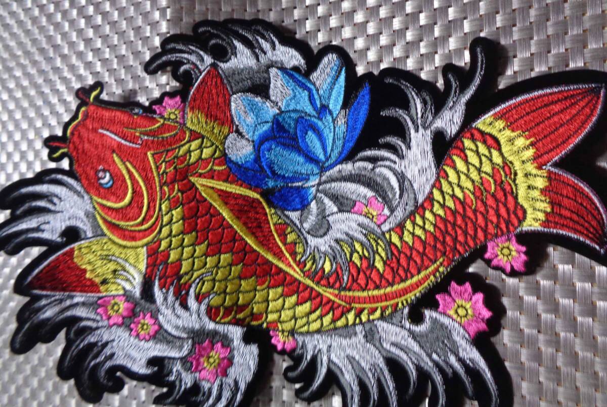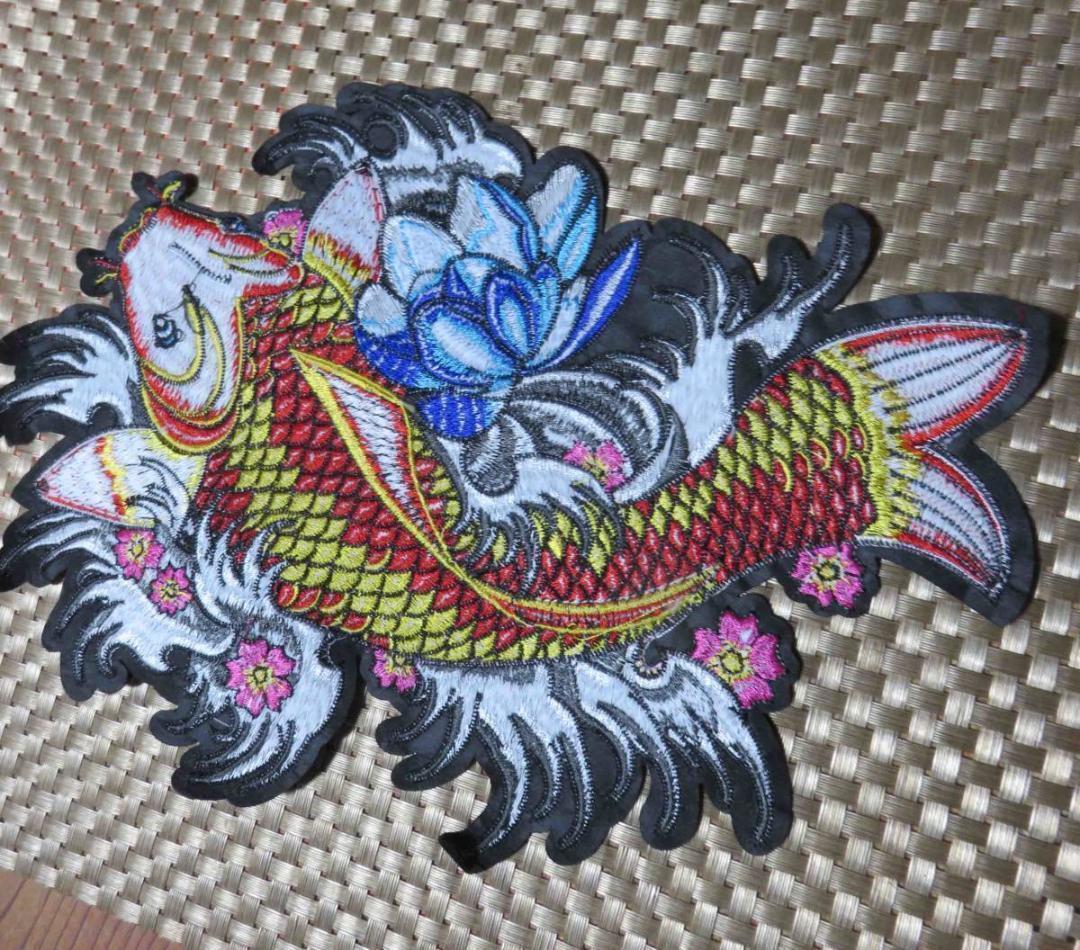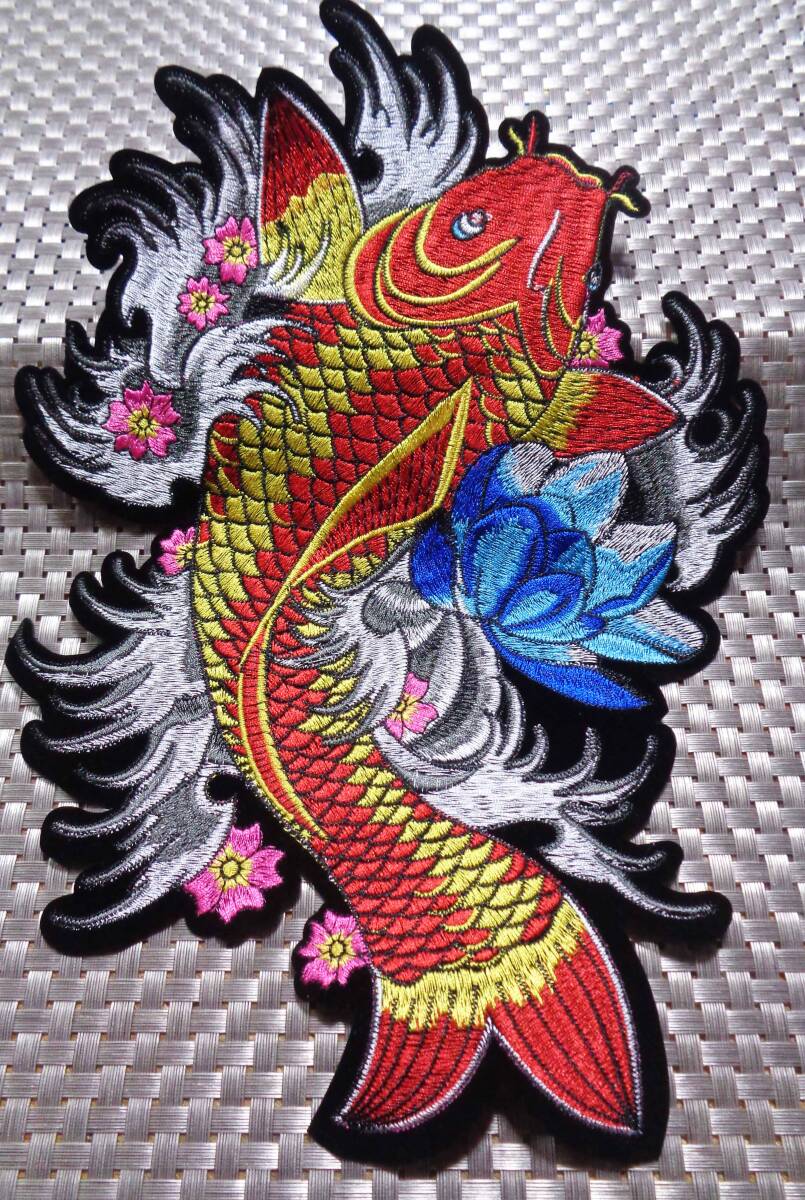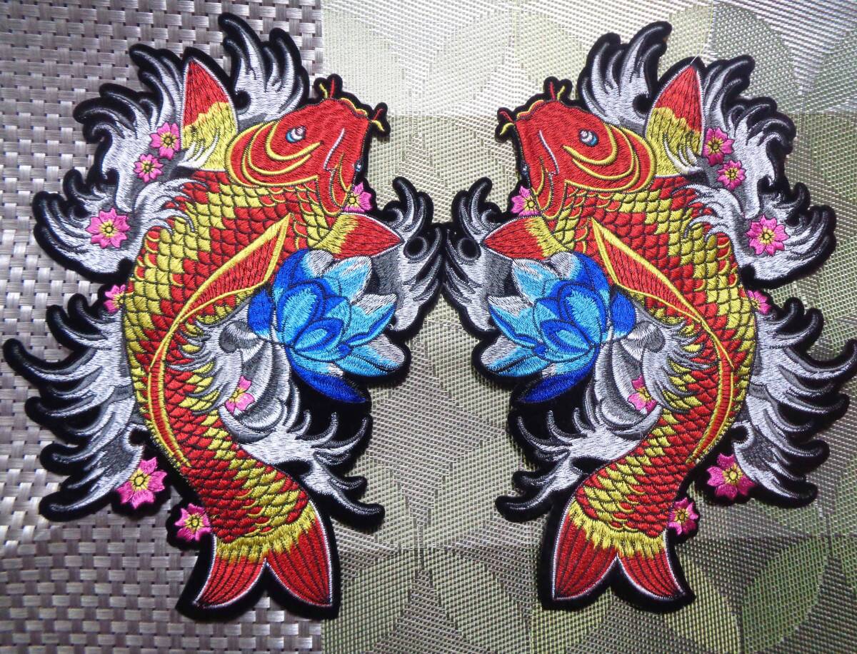 《特大2枚セット■ 左右跳赤黄鯉》 『匠 豪華 高品質』 レトロデザイン◆新品 鯉 カープ 蓮の花 迫力満点 江戸時代 明朝 清朝 レッドカープ 刺繍ワッペン(パッチ)◆激シブ◇スカジャン フライトジャケット ミリタリー  大型二輪車 オートバイ バイク 単車 ハーレー■【DIY リメイク】■素敵■《開運 幸運 ラッキーアイテム》