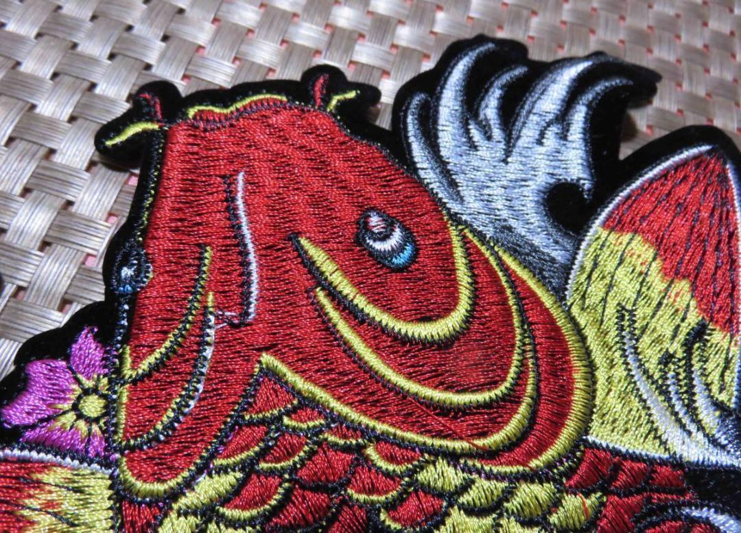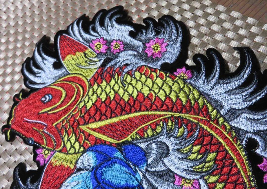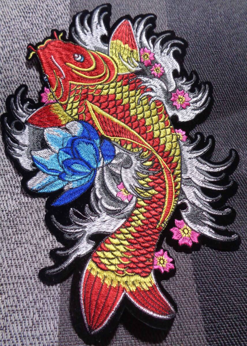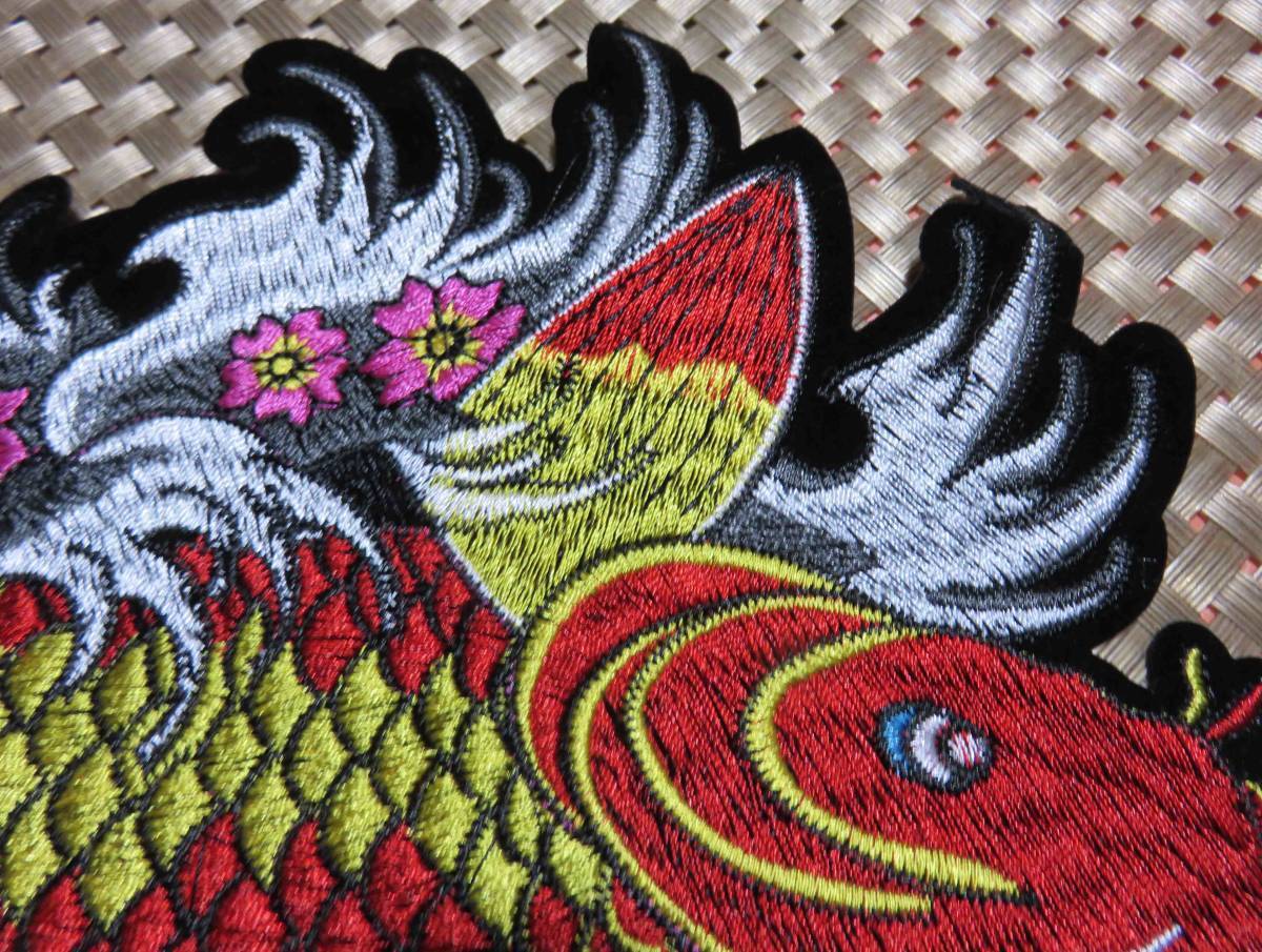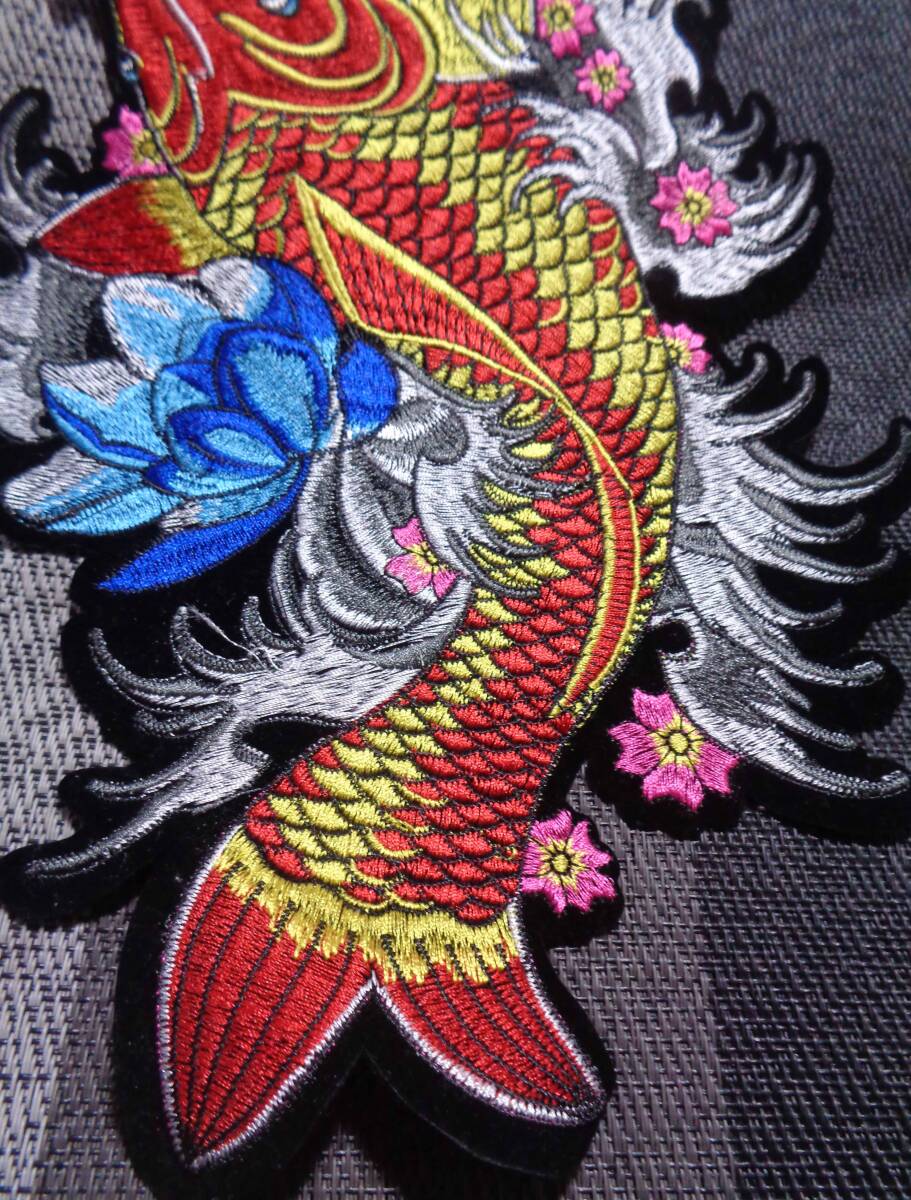 《特大2枚セット■ 左右跳赤黄鯉》 『匠 豪華 高品質』 レトロデザイン◆新品 鯉 カープ 蓮の花 迫力満点 江戸時代 明朝 清朝 レッドカープ 刺繍ワッペン(パッチ)◆激シブ◇スカジャン フライトジャケット ミリタリー  大型二輪車 オートバイ バイク 単車 ハーレー■【DIY リメイク】■素敵■《開運 幸運 ラッキーアイテム》