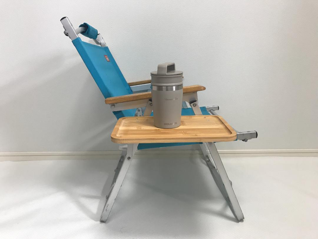 このフォールディングチェア用サイドテーブルなら、その悩みを簡単に解消できます!