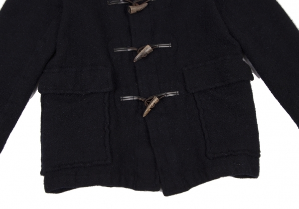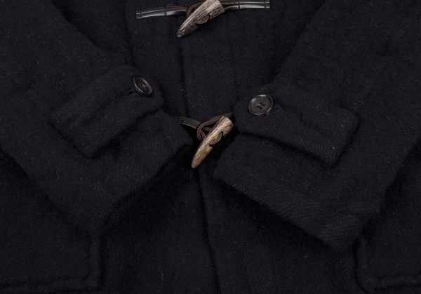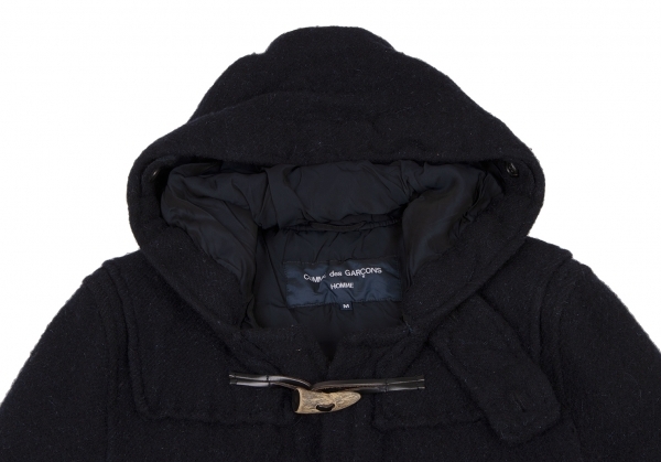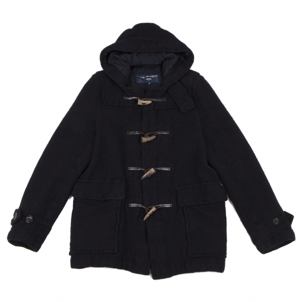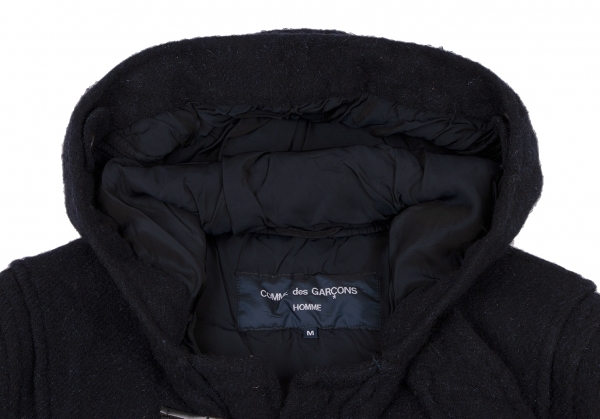 コムデギャルソンオムCOMME des GARCONS HOMME 縮絨ウールフーディーダッフルコート 紺M |