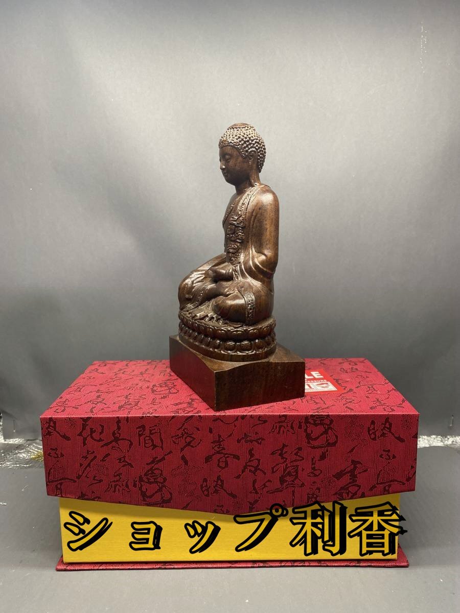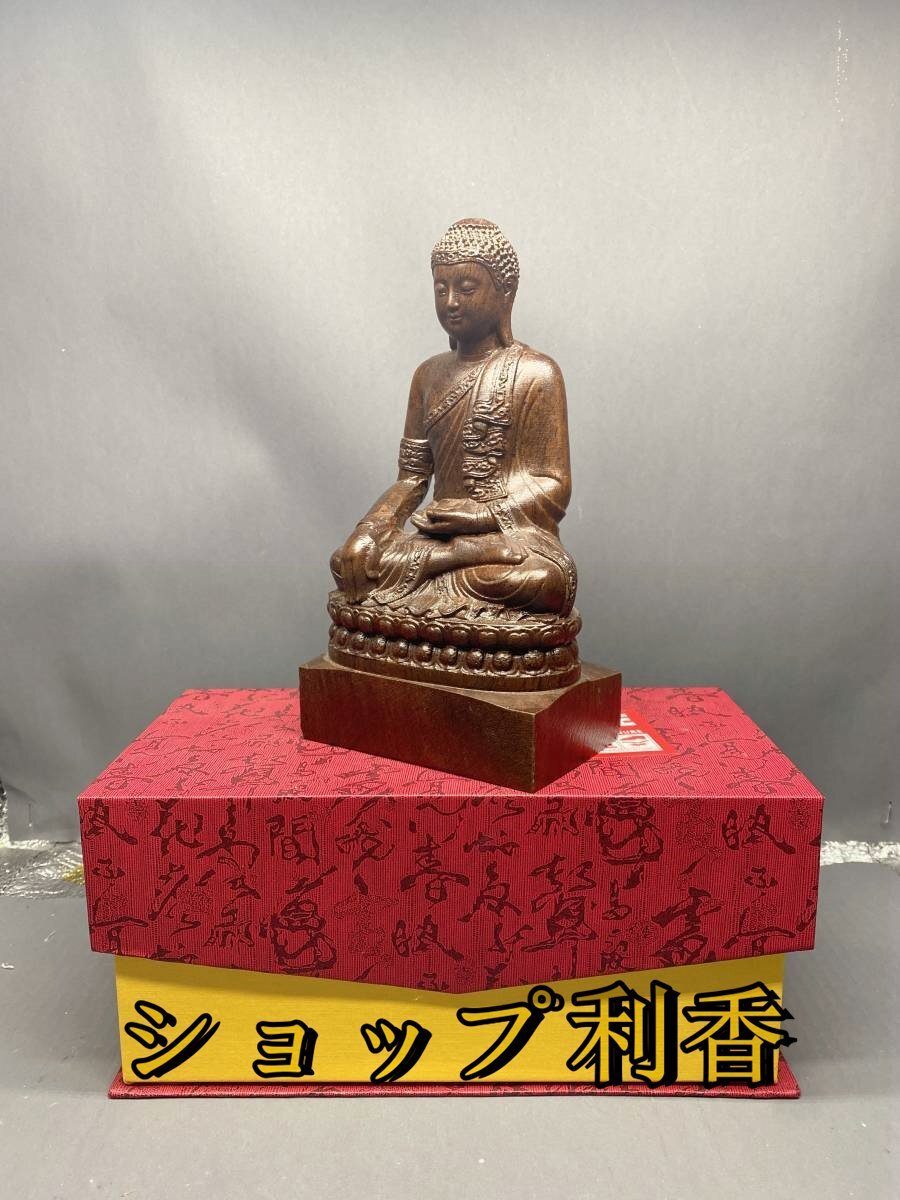 釈迦如来 木彫仏教 釈迦牟尼像 仏像座像 仏教美術 細密彫刻 仏壇 木彫 仏像 希少 高さ20cm