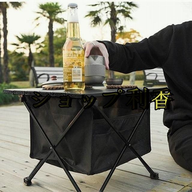 アルミ ロールテーブル 軽量 折りたたみ ローテーブル アウトドア キャンプ 小物バッグ付 持ち運び簡単 収納バッグ付 Lサイズ