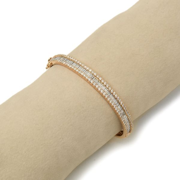 |         【ブランド】        YUKIZAKI ゆきざき 【品名】 バゲット バングル 【素材】 K18PG(ピンクゴールド) / ダイヤモンド5.00ct 【サイズ】 内径約19㎝ 最大幅約7.5mm 【重量】 約20.3g 【参考定価】 -  |