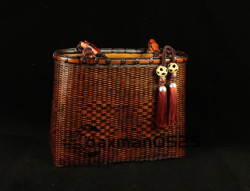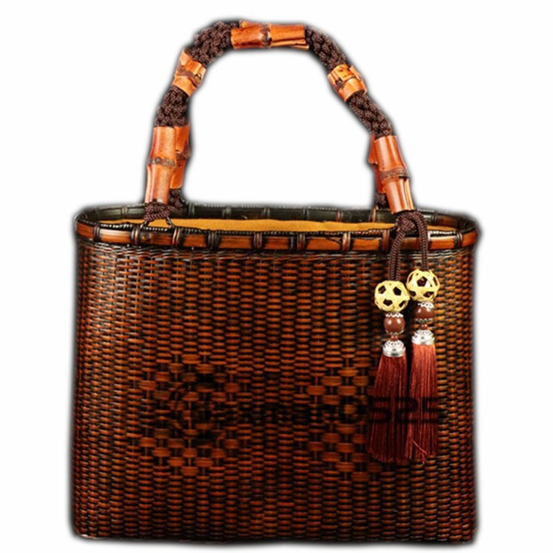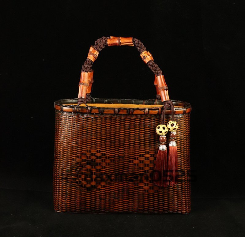 人気新品 バスケット 収納かご おしゃれ竹籠 編み 取っ手 持ち手  手作りトートバスケット 自然の良品 花火着物かご