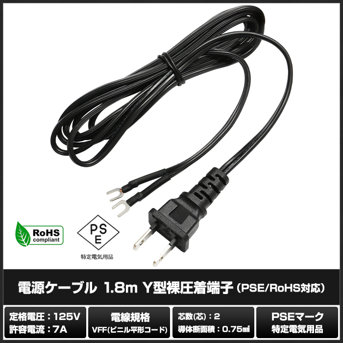 | 8742 電源ケーブル 1.8m Y形裸圧着端子 PSE/RoHS対応 | 1個 |