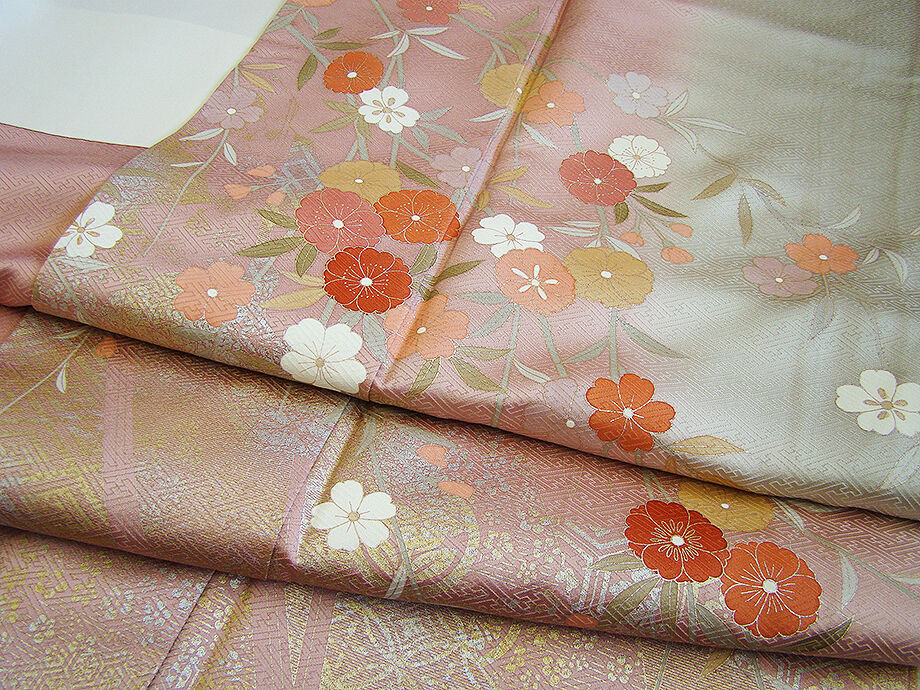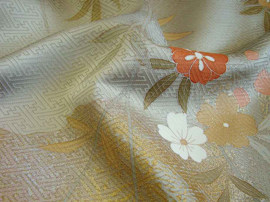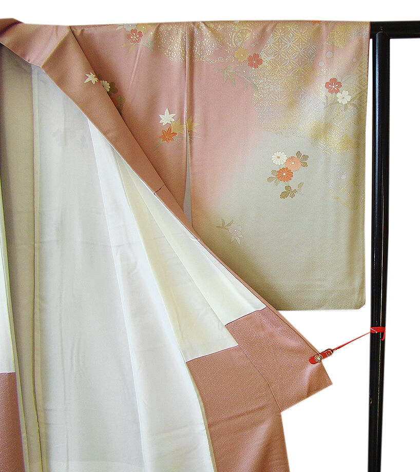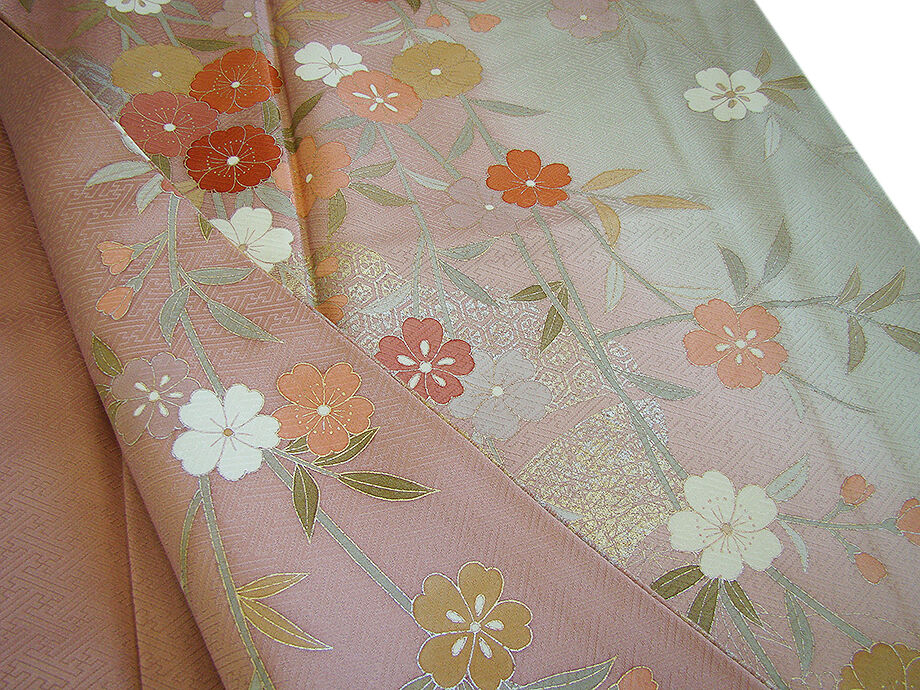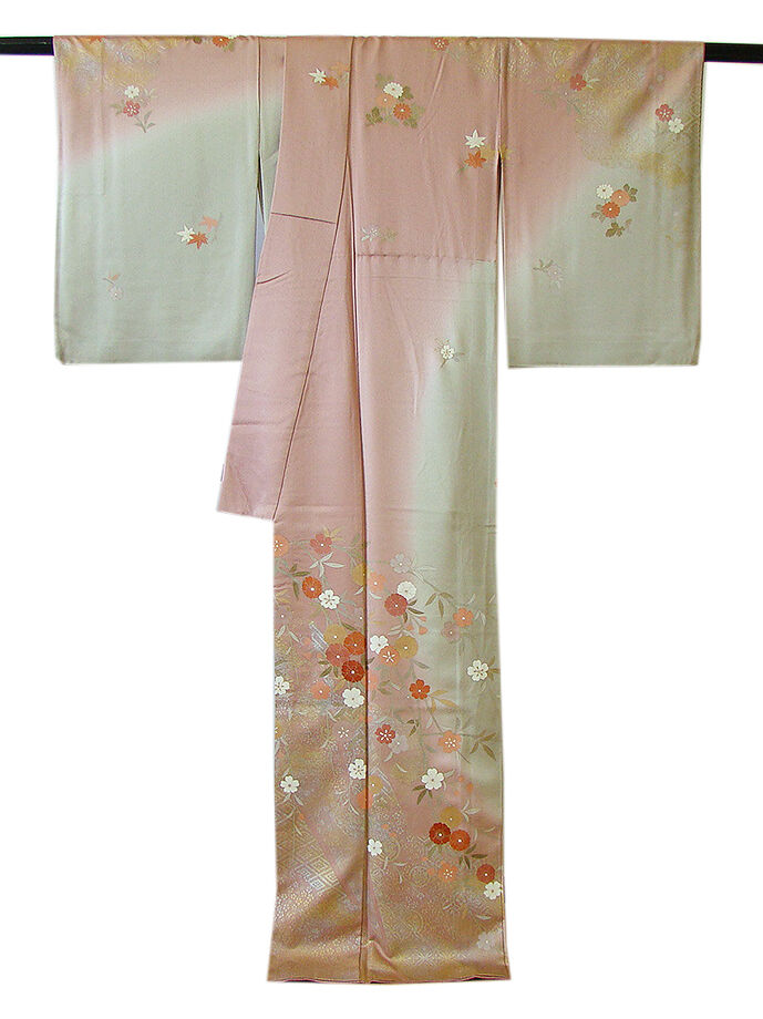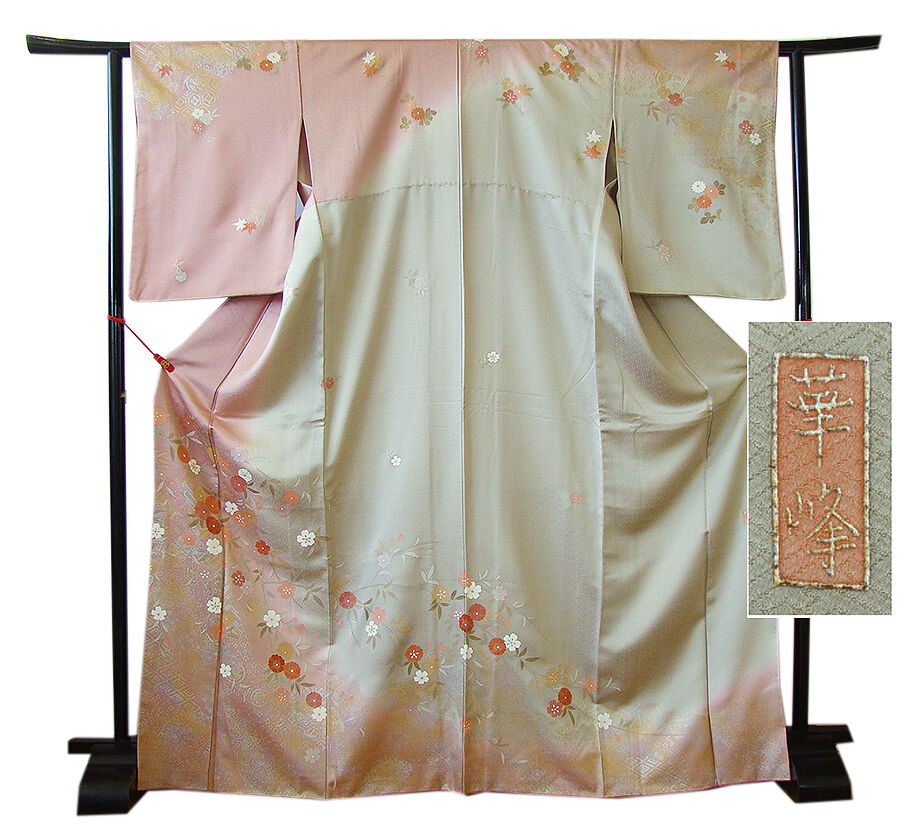 | 商品説明 | こちらのお品は「袷」ですので10月から5月までお召頂ければと思います。 しなやかな手触りの着心地良い重厚感溢れる重めの紋意匠の生地、 薄柿色と灰黄緑色の染め分け地に地模様入りに花草、七宝文、花亀甲等の金彩加工染、 気品に満ち溢れた彩りが正統派のお着物として一枚は欲しい秀逸品の素敵なお着物でございます。 共八掛(正絹)、作家の落款入り、幅広い年代の方にお召し頂けます。 |
