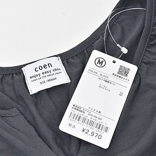 未使用 コーエン ギャザースリーブ カットソー M ブラック coen |