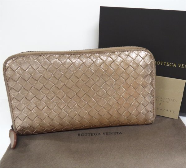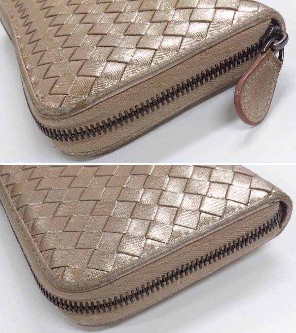 コメント | 『BOTTEGA VENETA』ボッテガヴェネタ イントレチャート ラウンドファスナー長財布。内側は紙幣収納ポケット×2、マチなしポケット×2、コインケース、カードポケット×8という仕様です。 |
