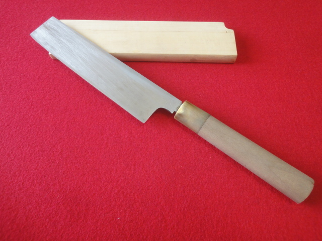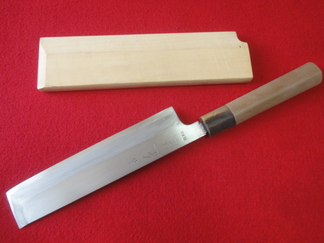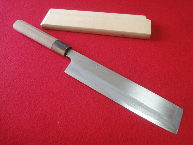 【正本総本店】関東型薄刃包丁 刃渡18.5㎝ 全長33.8㎝ 峰厚3.9mm ※鞘付 ※片刃 中古品 全国一律送料1100円