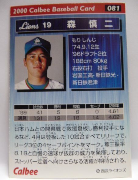 カルビープロ野球カード2000年#081【森 慎二(西武ライオンズ)L】平成12年チップスおまけ食玩トレーディングカード【中古】送料込