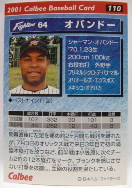 カルビープロ野球カード2001年#110【オバンドー(日本ハム ファイターズ)】平成13年チップスおまけ食玩トレーディングカード【中古】送料込