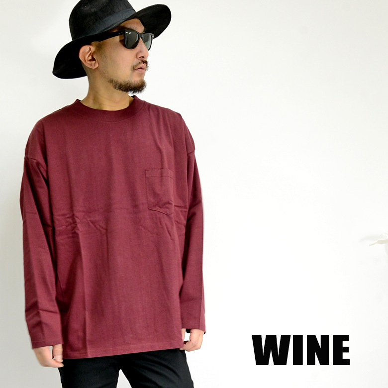 ビッグシルエット ポケット付き 長袖Tシャツ ヘビーウエイト メンズロンT 50542 新品ワイン LL
