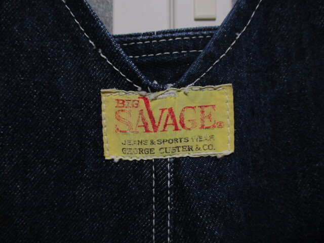 希少 国産デニム ヴィンテージ BIG SAVAGE オーバーオール ジーンズ 濃紺 インディゴ クリーニング済 ビッグサベージ ガレージワークウェア 世田谷ベース ライトニング ラルフローレン RRL LEVI'S LEE WRANGLER LVC 東洋エンタープライズ ベンデイビス アビレックス