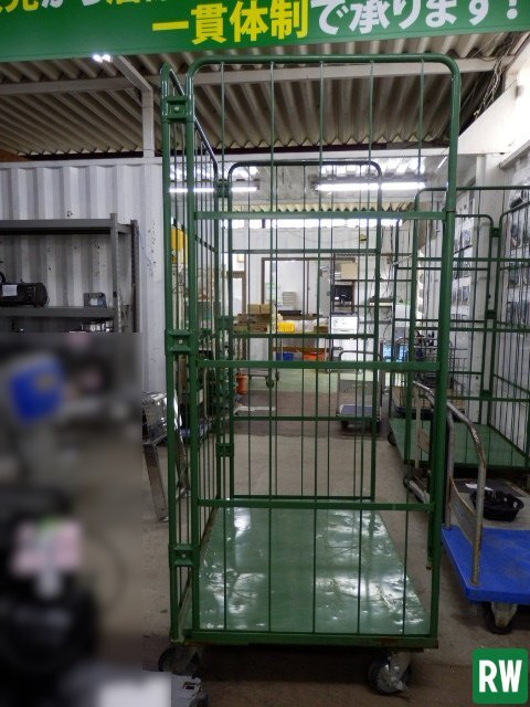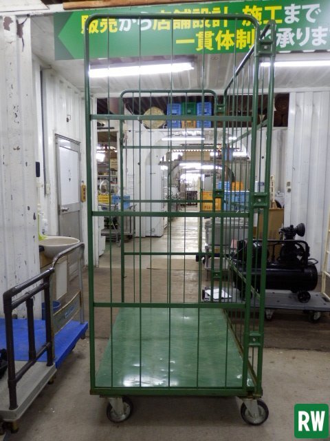 | 【引取限定】1台 カゴ台車 カゴ車 大型 スチール グリーン W1250×D910×H2100mm 業務用 店舗 運搬 保管 収納 |
