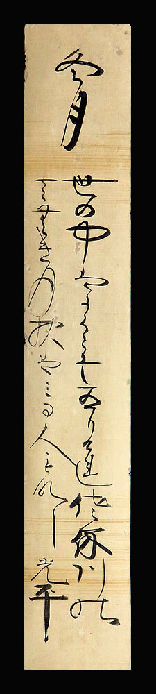 紙本肉筆未装短冊1葉 寸法:36.3cm x 6.1cm 商品状態:擦れが少し見られますが、この時代のものとしては良好な保存の品です。 伴林光平(ともばやし-みつひら) 1813-1864。江戸時代後期の国学者,歌人。文化10年9月9日生まれ。もと浄土真宗の僧。飯田秀雄,伴信友らにまなぶ。文久3年天誅組(てんちゅうぐみ)の挙兵に参加するが捕らえられ,4年2月16日京都で刑死。52歳。河内(かわち)(大阪府)出身。本姓は鈴木。通称は六郎。変名は並木春蔵。姓は「ばんばやし」ともよむ。著作に「稲木抄」「南山踏雲録」など。 出典:講談社デジタル版 日本人名大辞典+Plus |