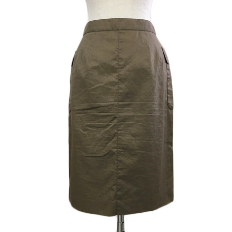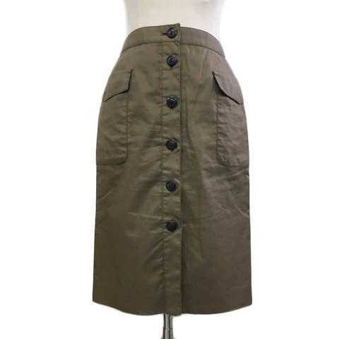 ボールジー BALLSEY トゥモローランド スカート タイト 膝丈 ボタンダウン リネン混 無地 34 茶 ブラウン レディース