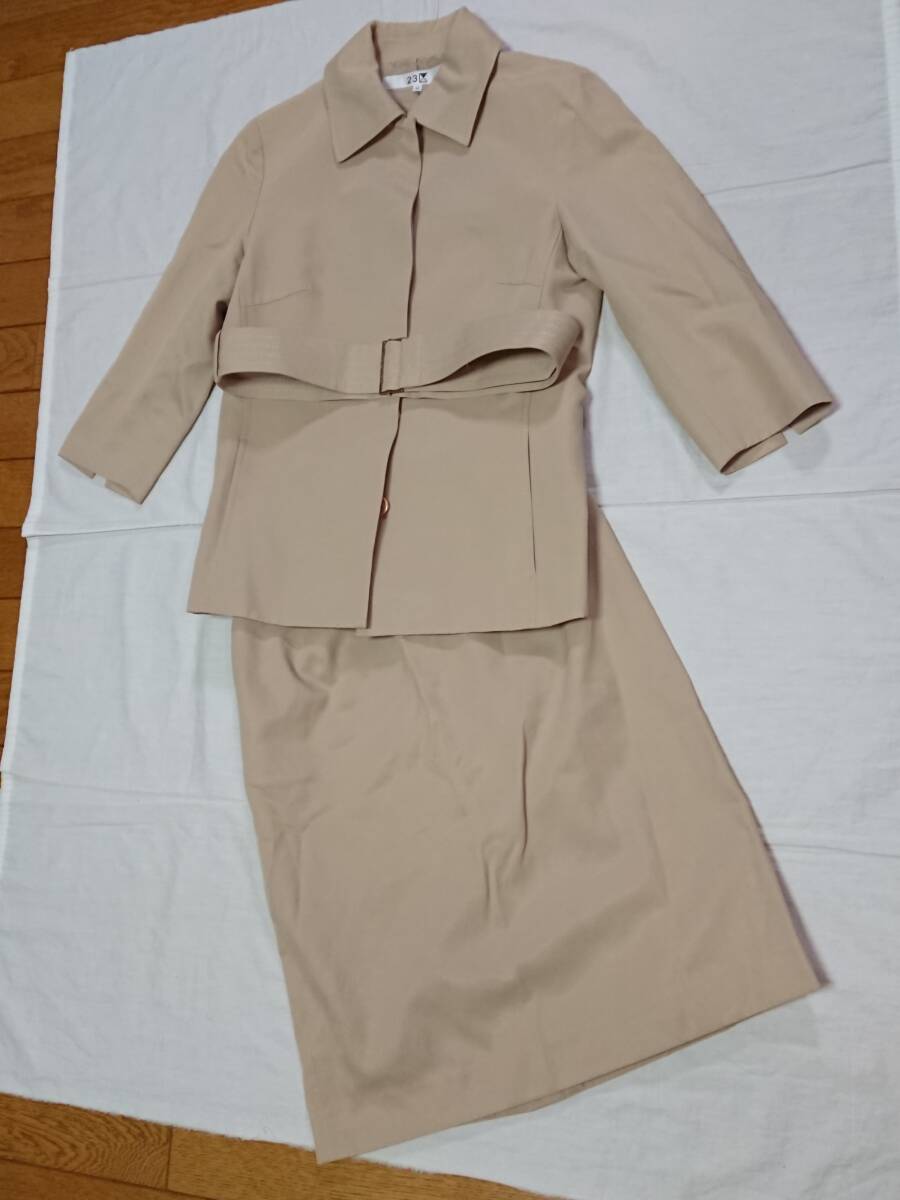 ユーズドですが着用感や汚れなどもなく美品です。 スカートはややシワがあります。 コンディション【A】 2枚目の色が実物に近く、黄色味のあるベージュです。 やや光沢のあるしっかりめの生地です。 トリアセテート56%、綿44%。 ジャケットのサイズ【32】 スカートのサイズ【34】 それぞれ3号、5号くらいのサイズです。 ◆実寸◆ ☆ジャケット 身幅43センチ 着丈55センチ 肩幅36センチ 袖丈41センチ ☆スカート ウエスト64センチ 総丈54センチ ☆コンディション☆ 【S】新品未使用 【A】新品同様、使用感のほとんどない状態 【B】やや使用感はあるがきれいな状態 【C】使用感が目立つが着られる状態 【D】汚れや傷などがある状態 |