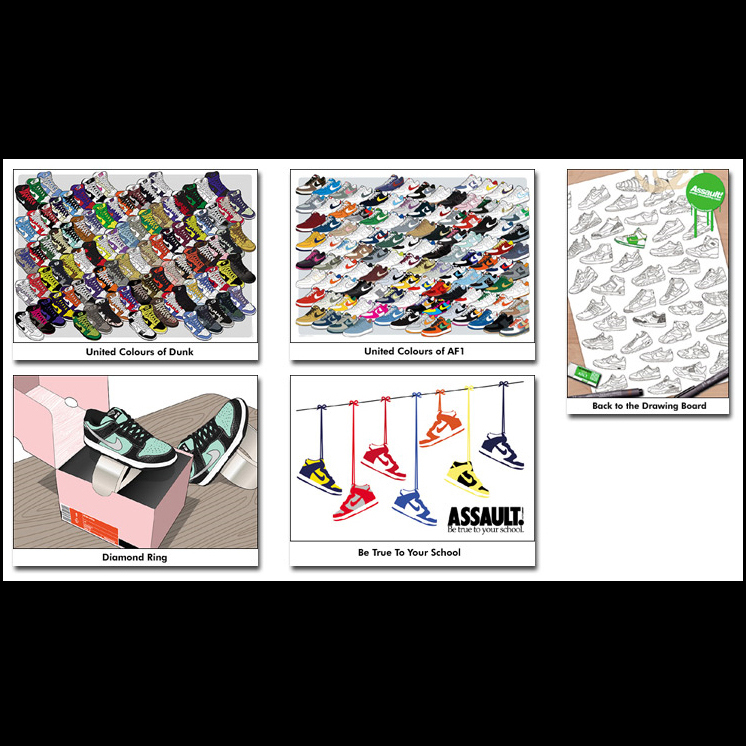 【激レア!】 ASSAULT Lithograph ナイキ スニーカー ポスター NIKE DUNK SB FORCE 1 AIR JORDAN 1 3 4 5 6 AIR MAX 1 90 95