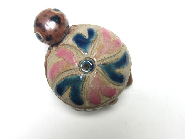 甲羅の中央に穴が開いていますが、はっきりとした使用用途はわかりません。もしかしたら、お線香立てかもしれません。