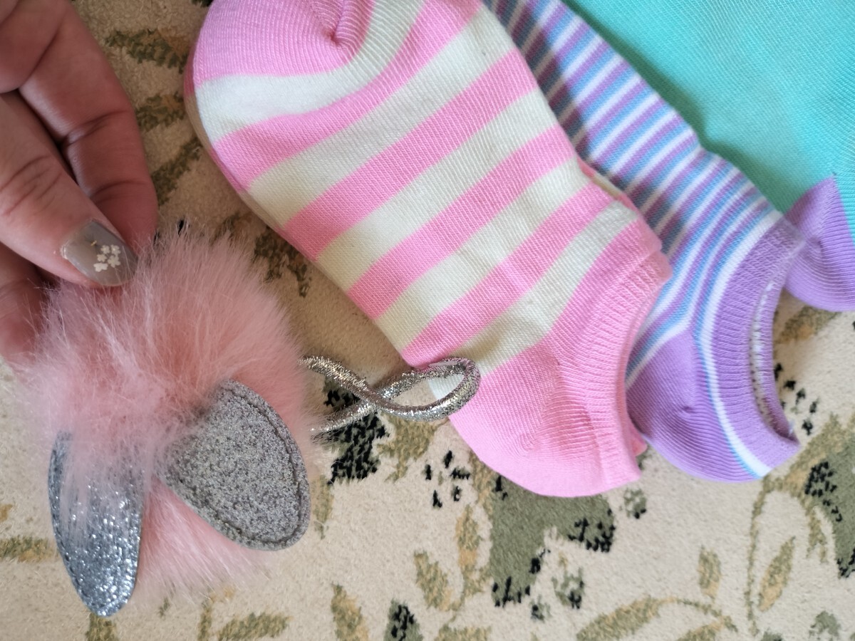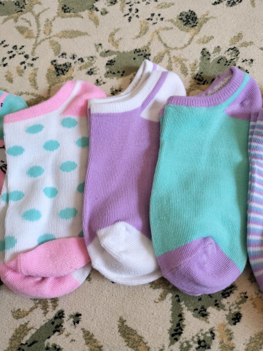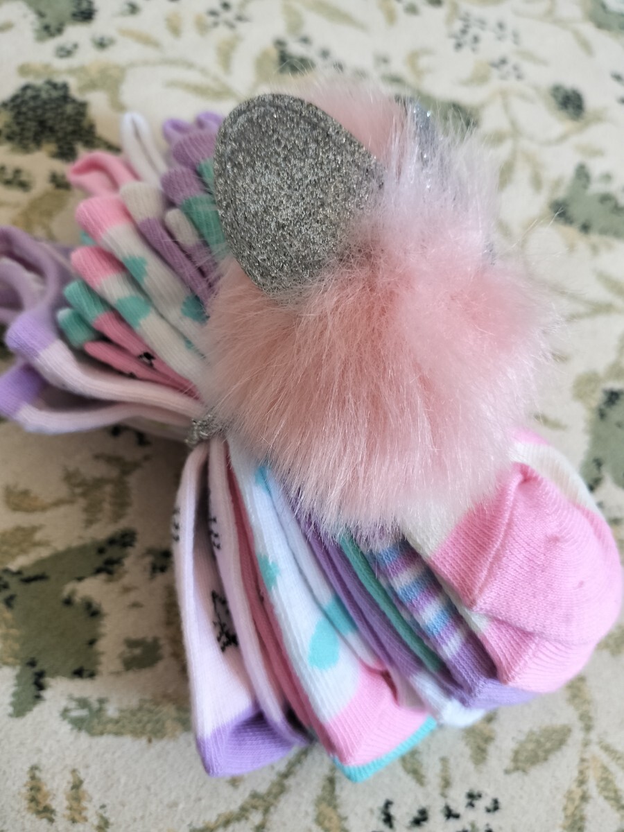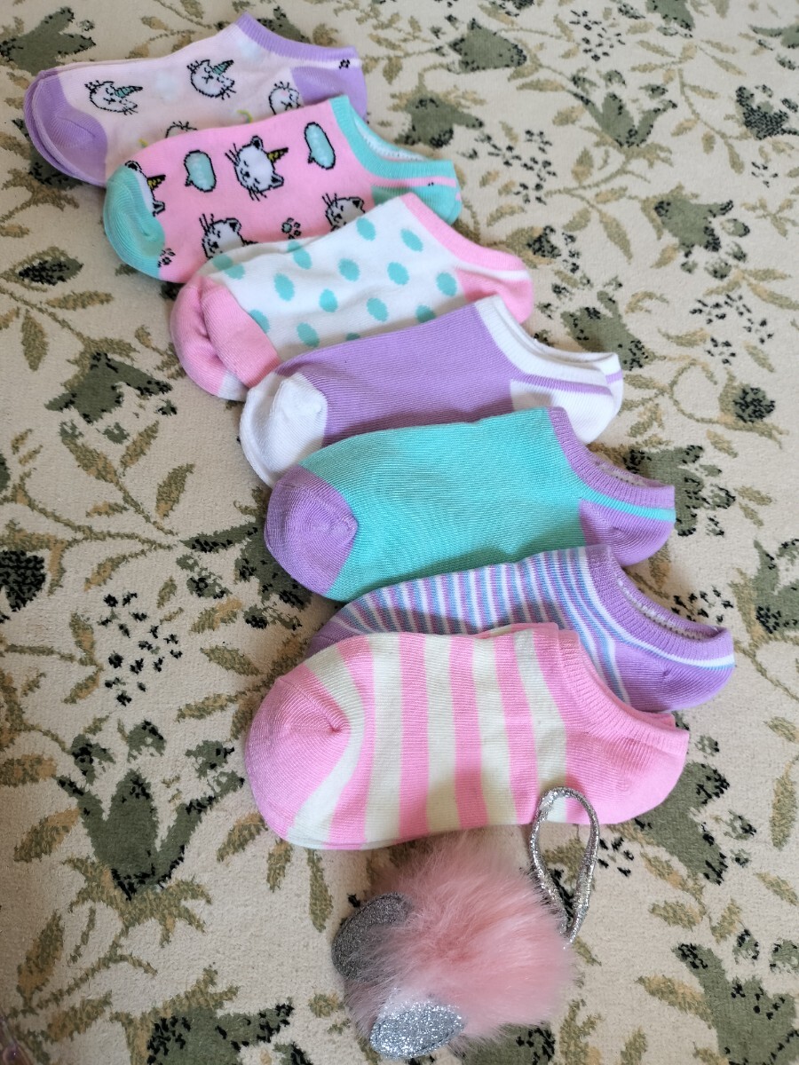写真の髪ゴムでまとめられて販売されていた7足セットです。