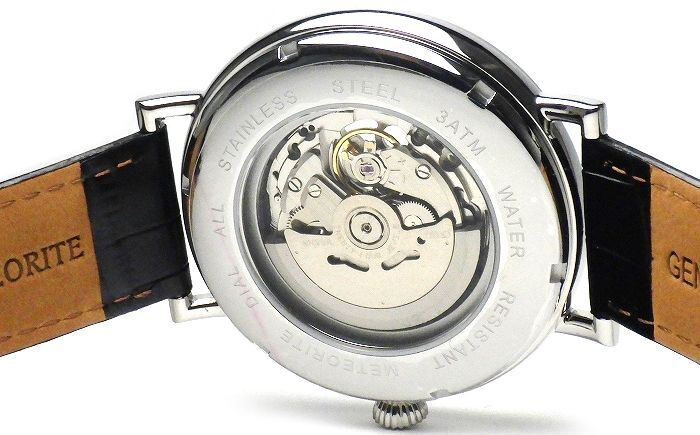 存在感とゴージャス感!盤面に大きく37.5mmサイズのムオニナル隕石を配置した豪華な腕時計です。セイコー製のムーブメントが採用されており、背面から見た機械仕掛けの時計美をも楽しめます。