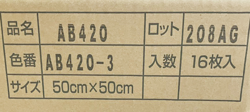 | 規格・仕様 | AB420-3マラケシュレザー サイズ:500mm×500mm 厚み:8.5mm 梱包単位:16枚(4m2) 重量:約22kg/ケース |