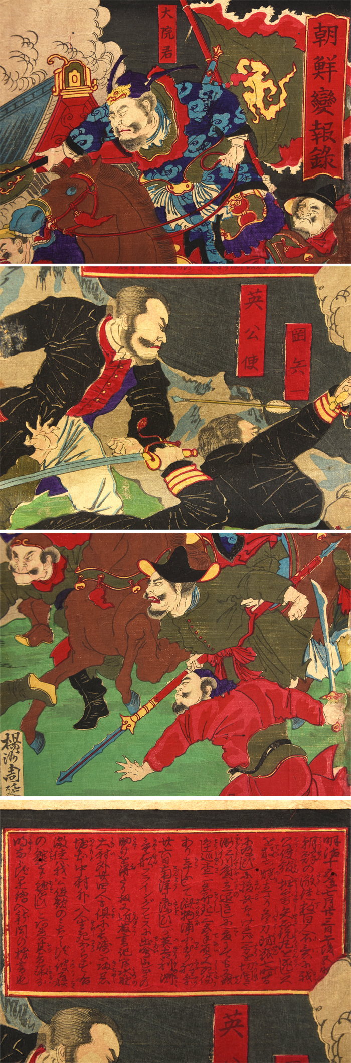【真作】 楊洲周延 大判錦絵三枚続 「朝鮮変報録」 明治15年 裏打ちなし 版画 木版画 浮世絵 明治版画 |