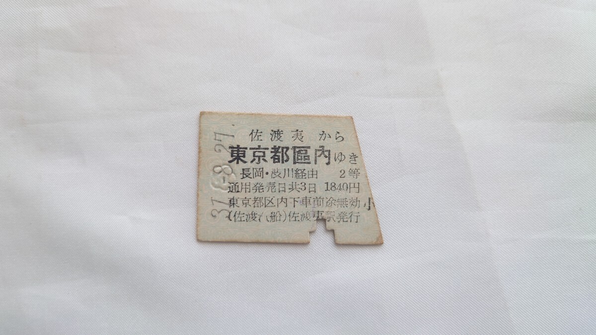 ▼佐渡汽船・佐渡夷駅発行▼佐渡夷から都区内ゆき国鉄連絡乗車券▼A型硬券昭和31年 小児断券