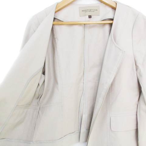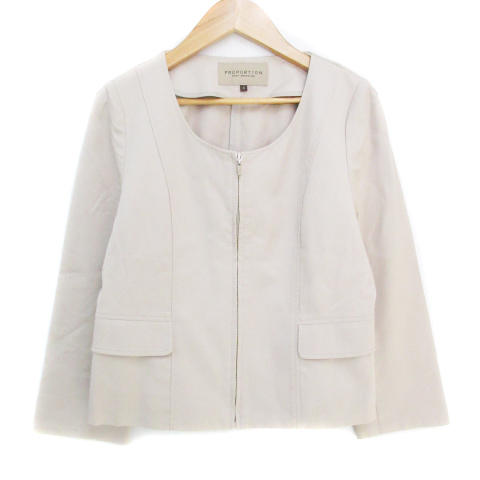 プロポーション ボディドレッシング ノーカラージャケット ミドル丈 七分袖 ジップアップ 3 ベージュ /FF11 ■MO レディース