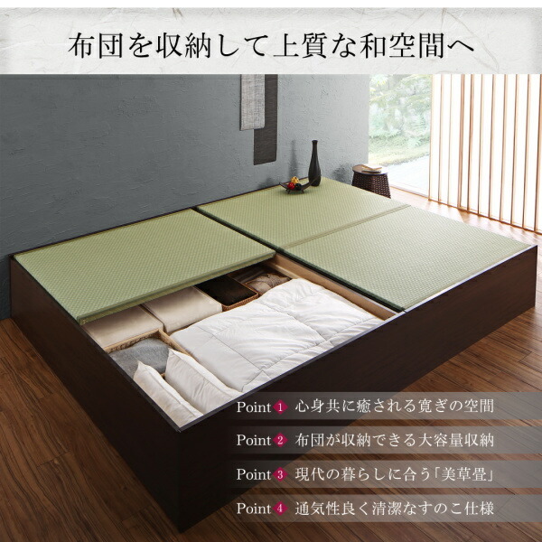 お客様組立 布団が収納できる・美草・小上がり畳連結ベッド ベッドフレームのみ ダブル