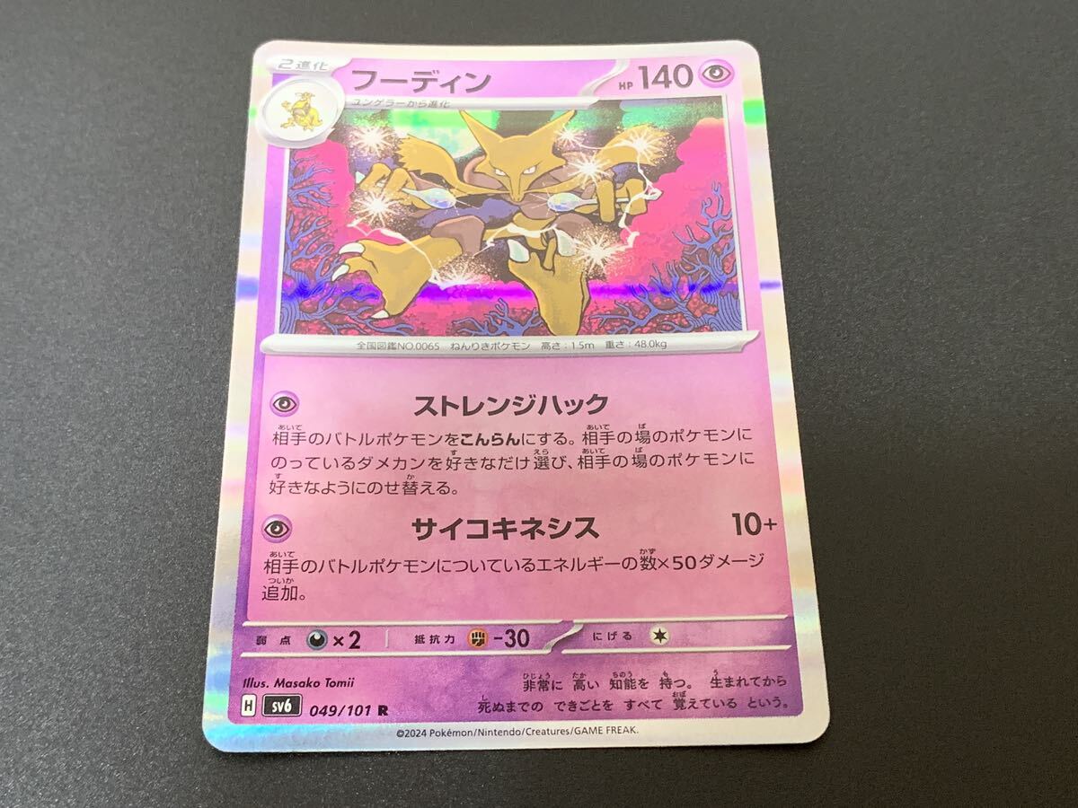 | 商品説明 | 商品説明、注意事項全てご覧の上で入札をお願いします。 入札して頂いた場合、上記に同意して頂いたと判断致しますので予めご了承下さい。 他の商品との同梱も可能です。その際は商品名とご一緒に取引ナビで必ずご連絡下さるようお願いします。 6枚までは定形郵便84円となります。それ以上ご希望の場合はその旨お伝え致します。 商品到着後、必ず受取連絡は行うようお願い致します。 又、不手際があった際は取引ナビでご連絡下さるようお願い申し上げます。 ■商品状態 【フーディン】Rです。 このカードの状態は「B+」です。 カードの状態は下記のようにS~Dにて表しております。 又、出品物によっては下記表現ではない場合が御座いますが 少しずつ修正していきますのでご理解下さいませ。 「S/ミント」 (未使用・パックから開けたばかりの状態。傷 汚れがほぼない物。) 「A/ニアミント」 ( 開封直後によくある綺麗な状態。若干の傷、痛みがある状態) 「B/エクセレント」 (多少の傷、痛みが見受けられたりする状態。) 「C/ベリーグッド」 (目立つ傷などがあったりする状態。スリーブをつけてプレイする分には差し支えのない状態。) 「D/プアー」 (傷、汚れがかなり目立つ状態。傷を気にされない方向け。) 「+-」で状態の補足を行う場合が御座います。 +=該当のランクより若干良いが1ランク上げるほどではない物。 -=該当のランクより若干低いが1ランク下げるほどではない物。 レリーフ特有の凹凸、反りに関しましては上記状態には反映しません。 又、海外版のお品は作りが粗いため、初期傷等が多い場合が御座います。 出来る限り当方が丁寧にチェックを行っていますが、人の手によるものですのでどうしても見落としなどがある場合が御座います。 過度に気にされる方は入札をご遠慮下さいませ。 表現の仕方など人それぞれ感じ方が違います。上記を踏まえた上で御入札を宜しく御願い致します |